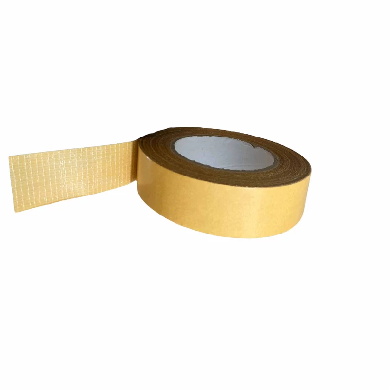 چسب دوطرفه انگلیسی الیاف دار از نوع چسب های دوطرفه ی پوسته نازک می باشد ، رنگ آن تقریبا شفاف بوده جنس آن از پارچه تقویت شده با الیاف تار و پودی پلی استر می باشد و از کیفیت بسیار بسیار بسیار بالایی برخوردار است . چسب دوطرفه نخ دار و یا به اصطلاح چسب دوطرفه مسلح که به چسب کلاه گیس نیز معروف است از بافت تاروپودی تشکیل شده است. این بافت تار و پودی بر روی فیلم شفاف ۱۰۰ میکرونی لمینت شده است و ترکیبی فوق العاده از نر چسبندگی استحکام و انعطاف پذیری تشکیل داده است. جهت چسباندن پلی اتیلن جهت چسباندن OPP جهت چسباندن پارچه جهت چسباندن الیاف جهت چسباندن عایق های حرارتی و برودتی جهت چسباندن فوم های حرارتی و برودتی جهت چسباندن فوم های پلی اتیلن،PE، EVA همچنین از این چسب می توان جهت چسباندن عایق های الاستومری ، کلاه گیس، کاغذ، مقوا، پارچه، پلاستیک، بنر و … به سطوح مختلف از جمله فلز ، سنگ ، سرامیک و … استفاده نمود.