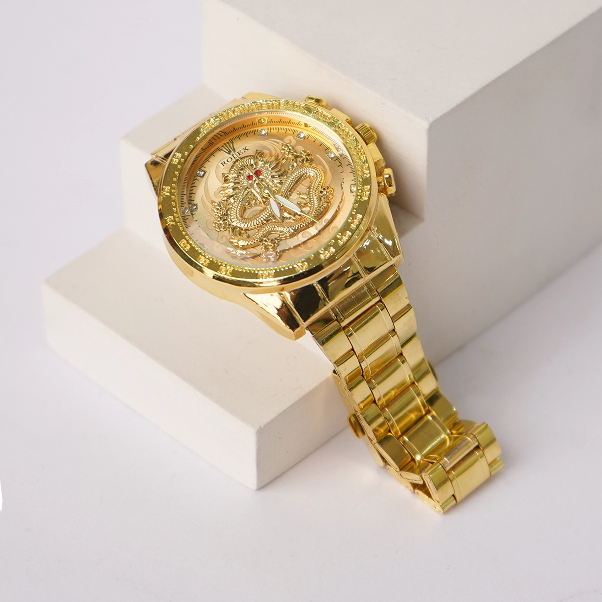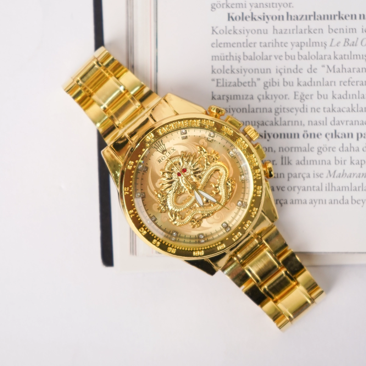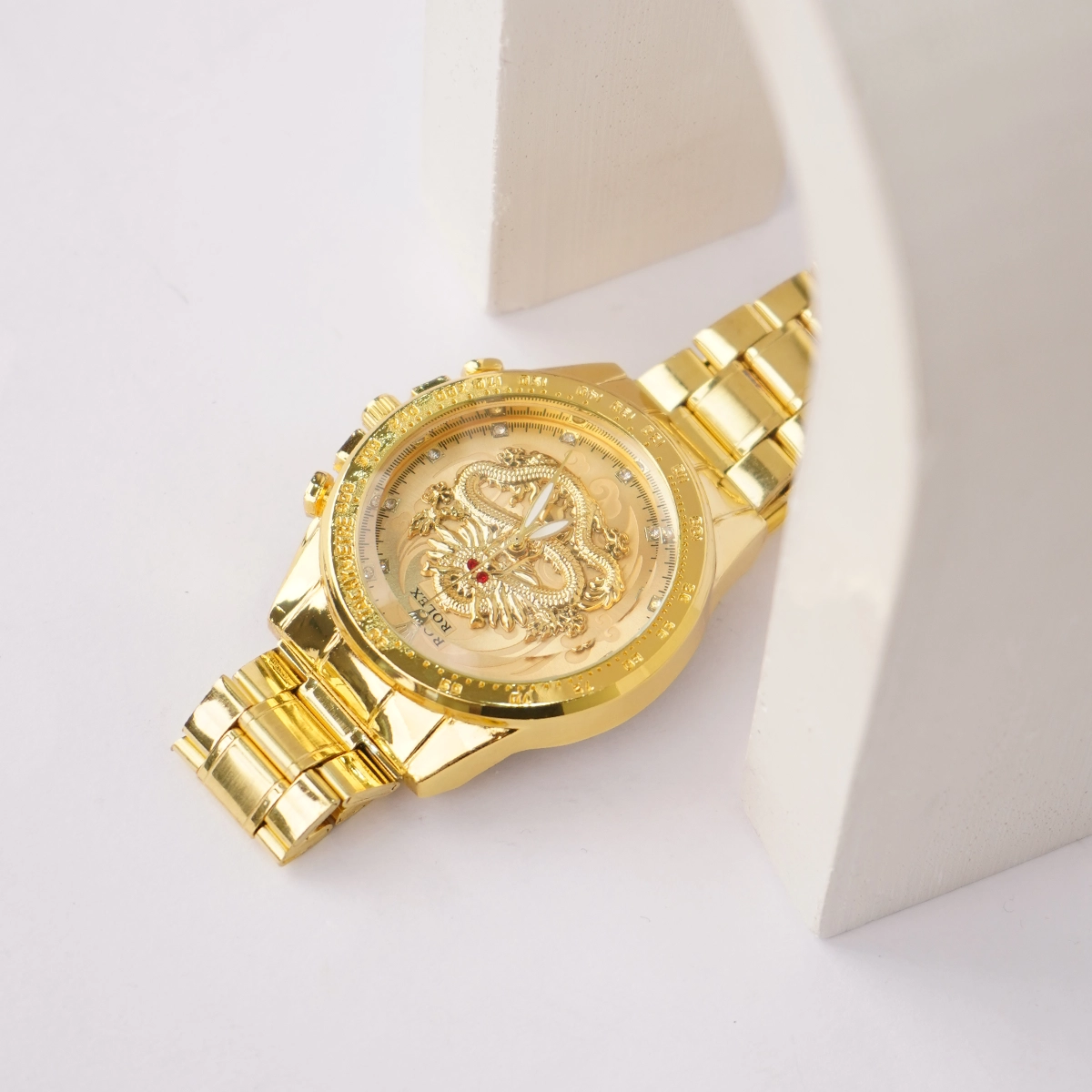 ساعت مردانه طلایی صفحه طلایی مدل DRAGON