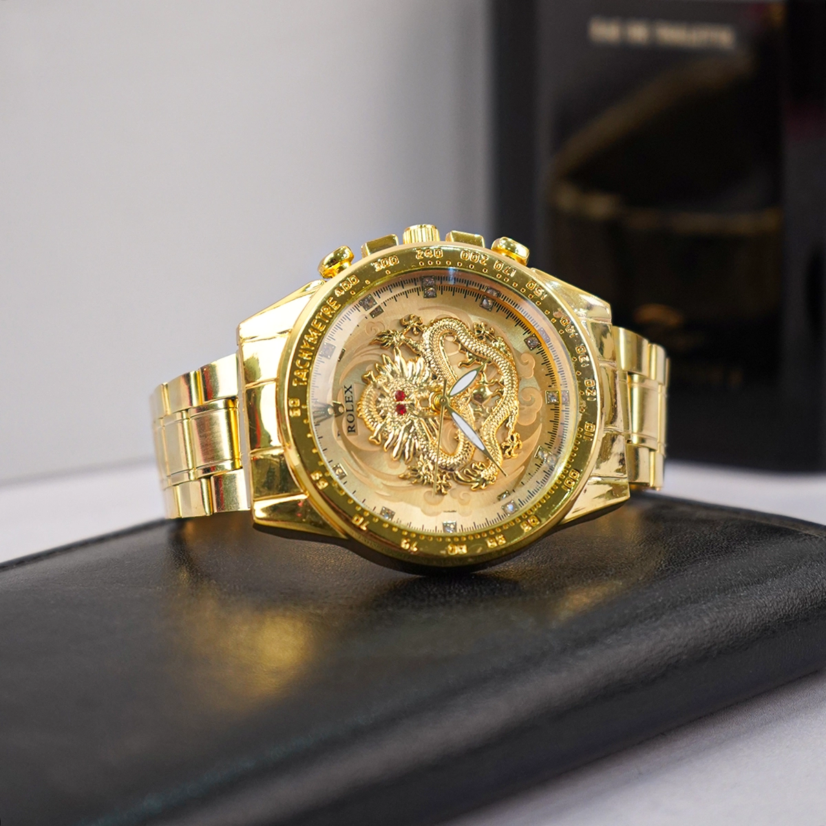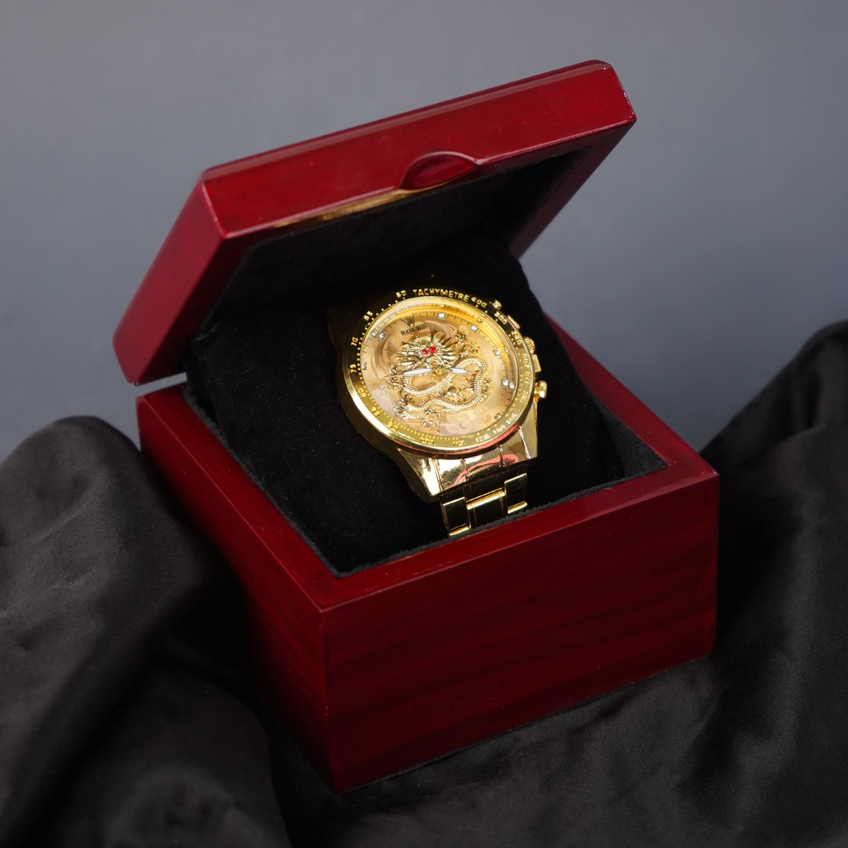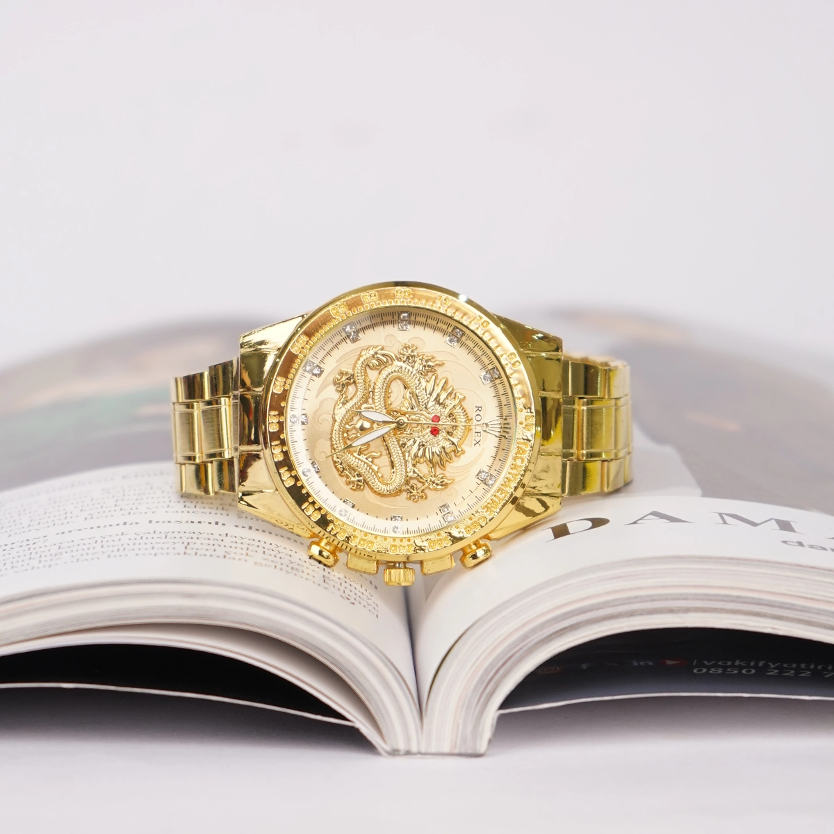 ساعت مردانه طلایی صفحه طلایی مدل DRAGON