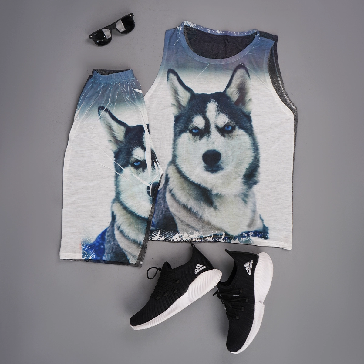 ست رکابی شلوارک مردانه طرح گرگ 2