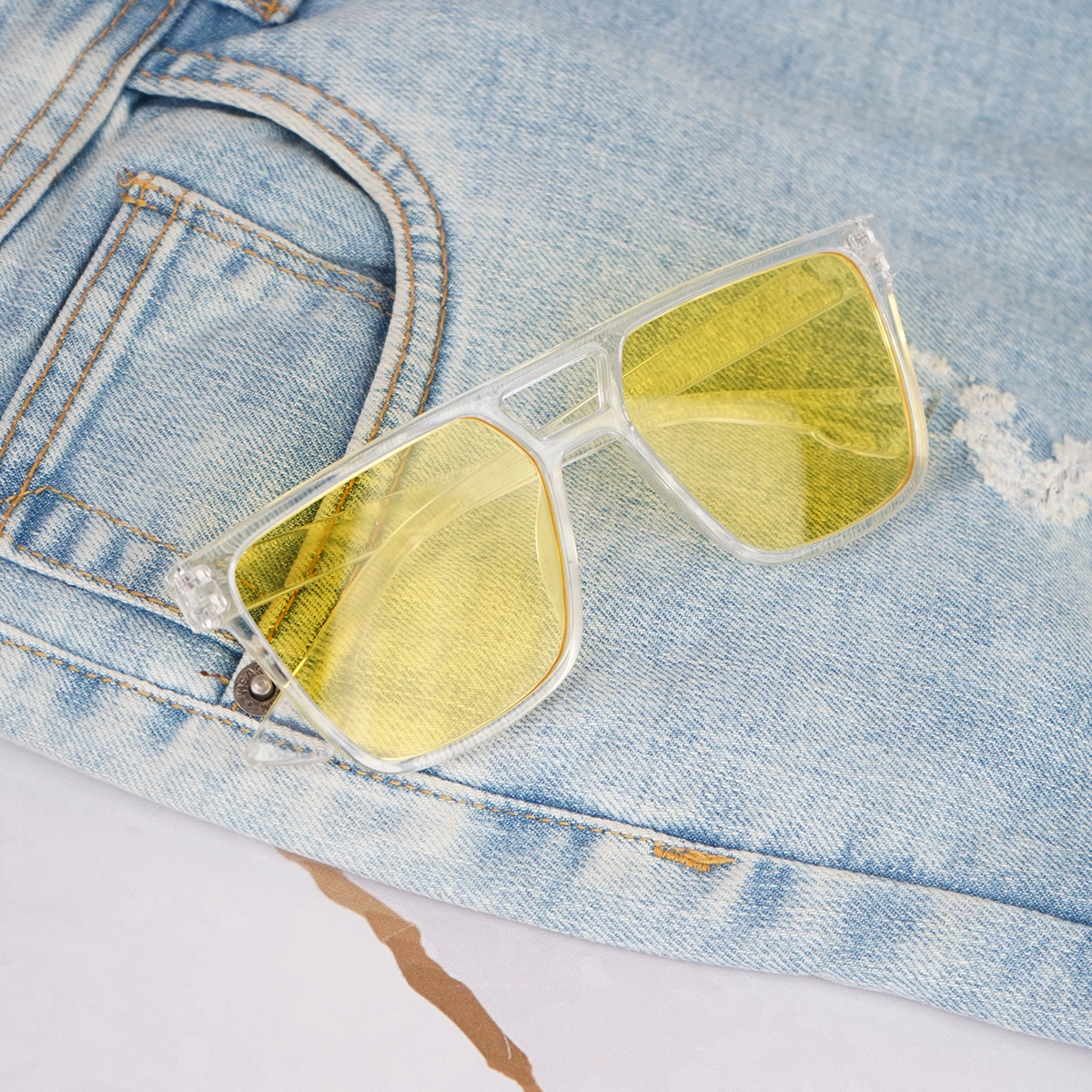 عینک آفتابی فریم شیشه ای زرد مدل M60