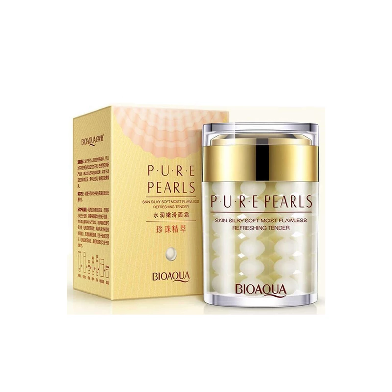 کرم شب ضد چروک مروارید بایو آکوا bioaqua پودر مروارید، حاوی کلسیم، پروتئین، ویتامین و آمینو اسیدهایی است که برای انواع پوست ها مناسب است و موجب بهبود التهاب پوست، درمان و افزایش قابلیت ارتجاعی و زیبایی آن می شود. به علاوه، به جذب چربی و آلودگی های پوستی، فیلتر اشعه های فرابنفش و پیشگیری از هاپرپیگمانتاسیون (با کاهش تولید ملانین در پوست) کمک می کند. خواص ضد میکروبی این پودر، موجب از بین بردن لکه ها، جوش ها، جای جوش ها و خشکی پوست می شود. کرم مروارید بیو آکوا با بافتی سبک و خاص تمامی خواص خوب را برای ترمیم و باسازی پوست و همچنین روشن کننده و لیفتینگ را دارا بوده از مواد ارگانیک و تکنولوژی جدید در ترکیبات آن بهره گرفته شده است.
