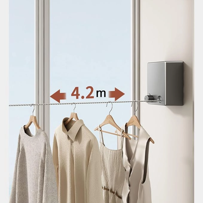 بند این محصول تا طول حداکثر ۴.۲ متر قابل تنظیم و استفاده می باشد. البته به پیشنهاد کمپانی سازنده، بهتر است از طول ۱ متر به بالا استفاده شود. همچنین این بند رخت طول 9CM، عرض 8.5CM و ارتفاع 14CM تحمل وزن نهایتا ۲۰ کیلوگرم را دارد.