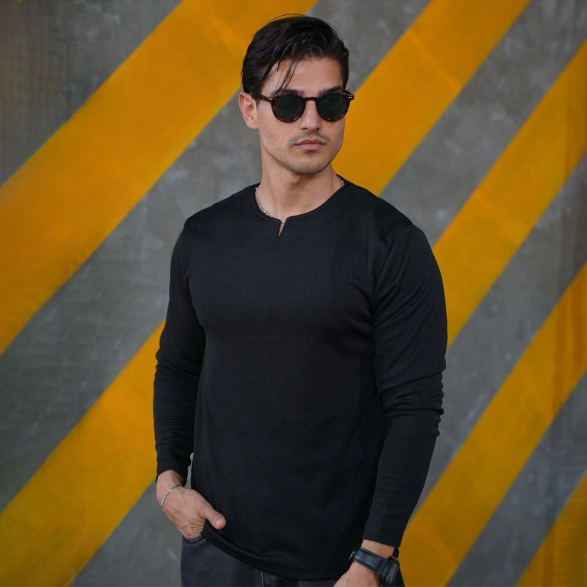 بلوز مردانه مشکی یقه کوبایی مدل Etron