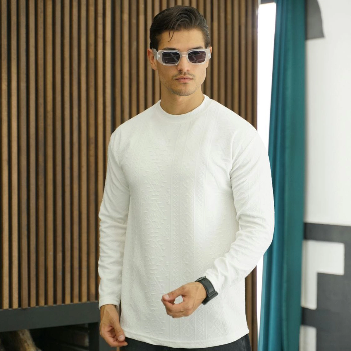 بلوز طرح دار مردانه مراکشی سفید مدل Nikan