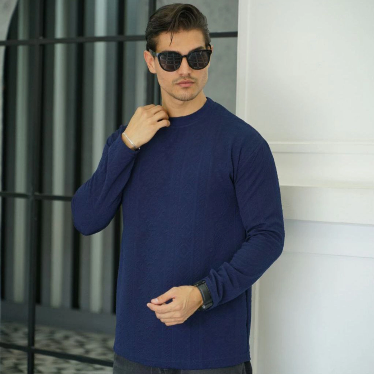 بلوز طرح دار مردانه مراکشی سرمه ای مدل Nikan