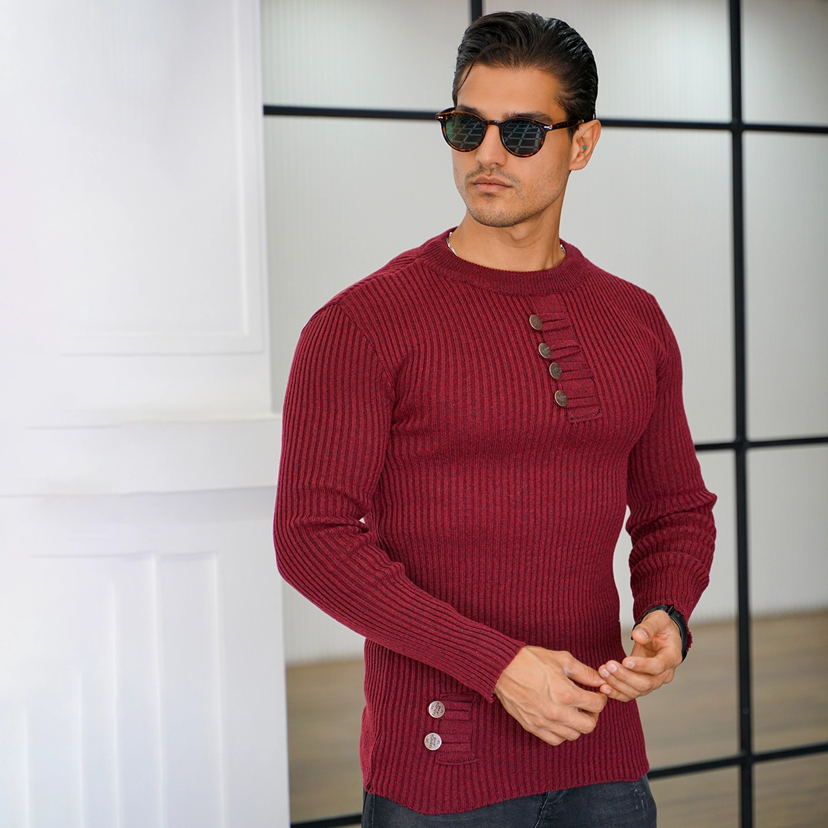 بافت مردانه زرشکی مدل دکمه ای