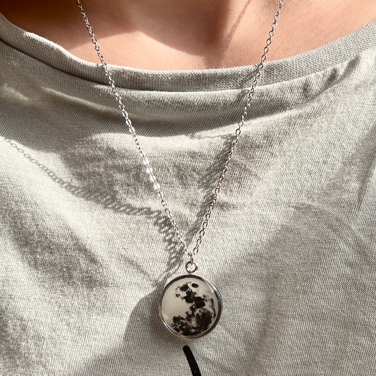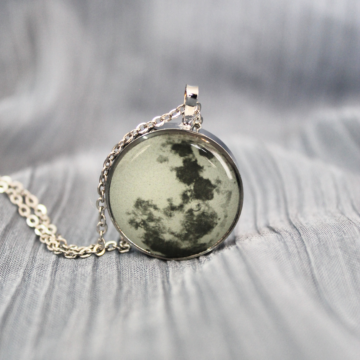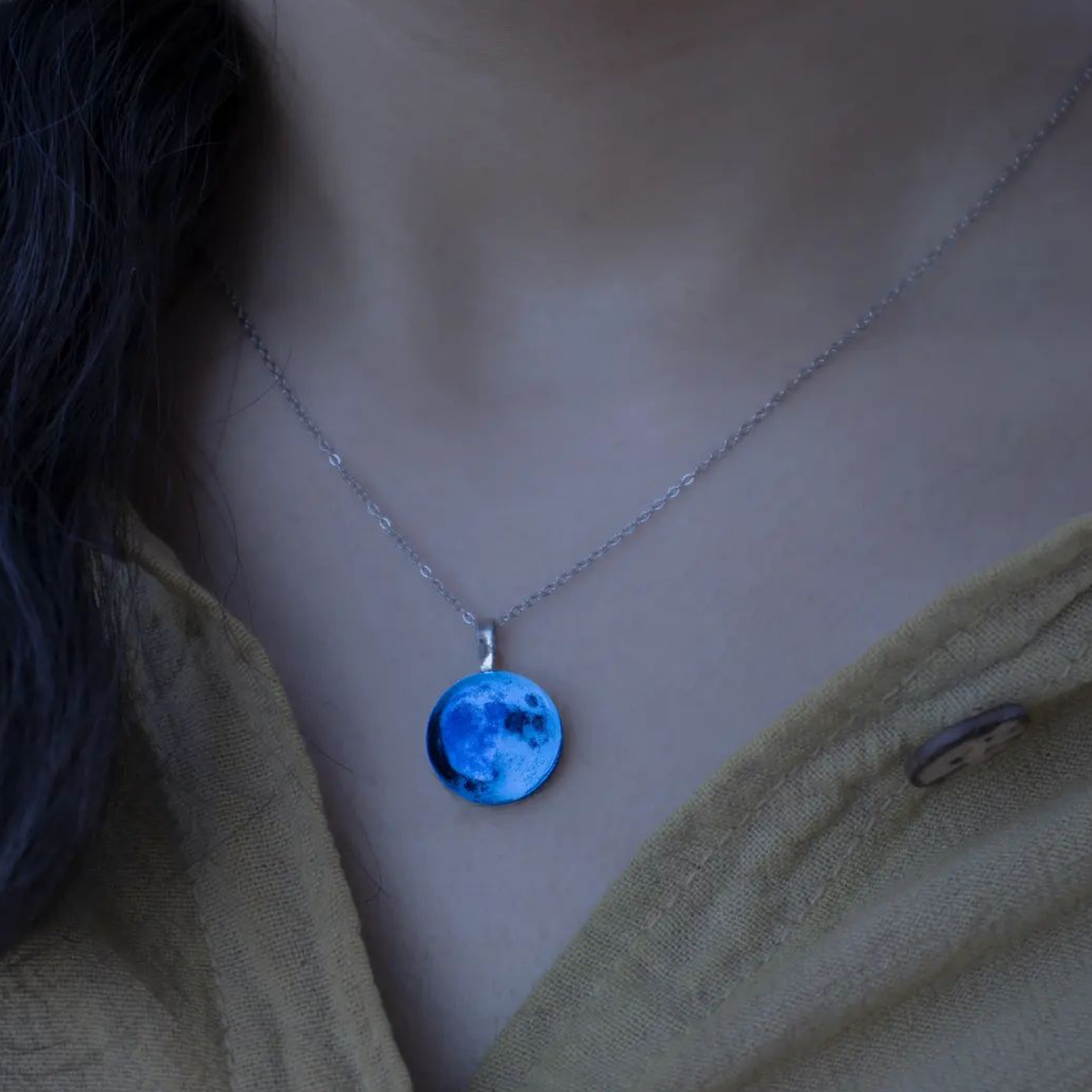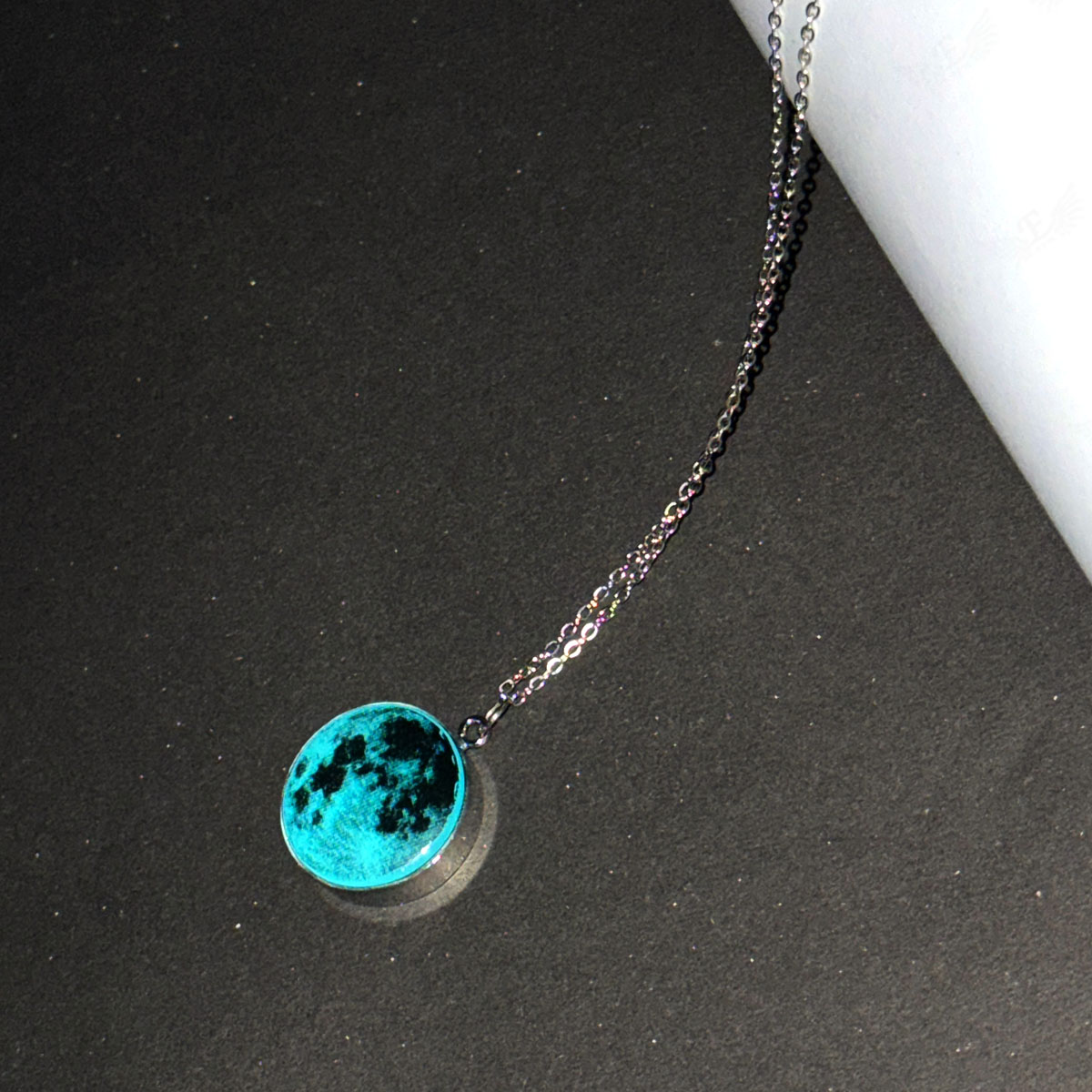 گردنبند ماه شب تاب جنس : استیل و رنگ ثابت اندازه : 45 سانتی متر با شارژ شدن در روشنایی در تاریکی میدرخشد