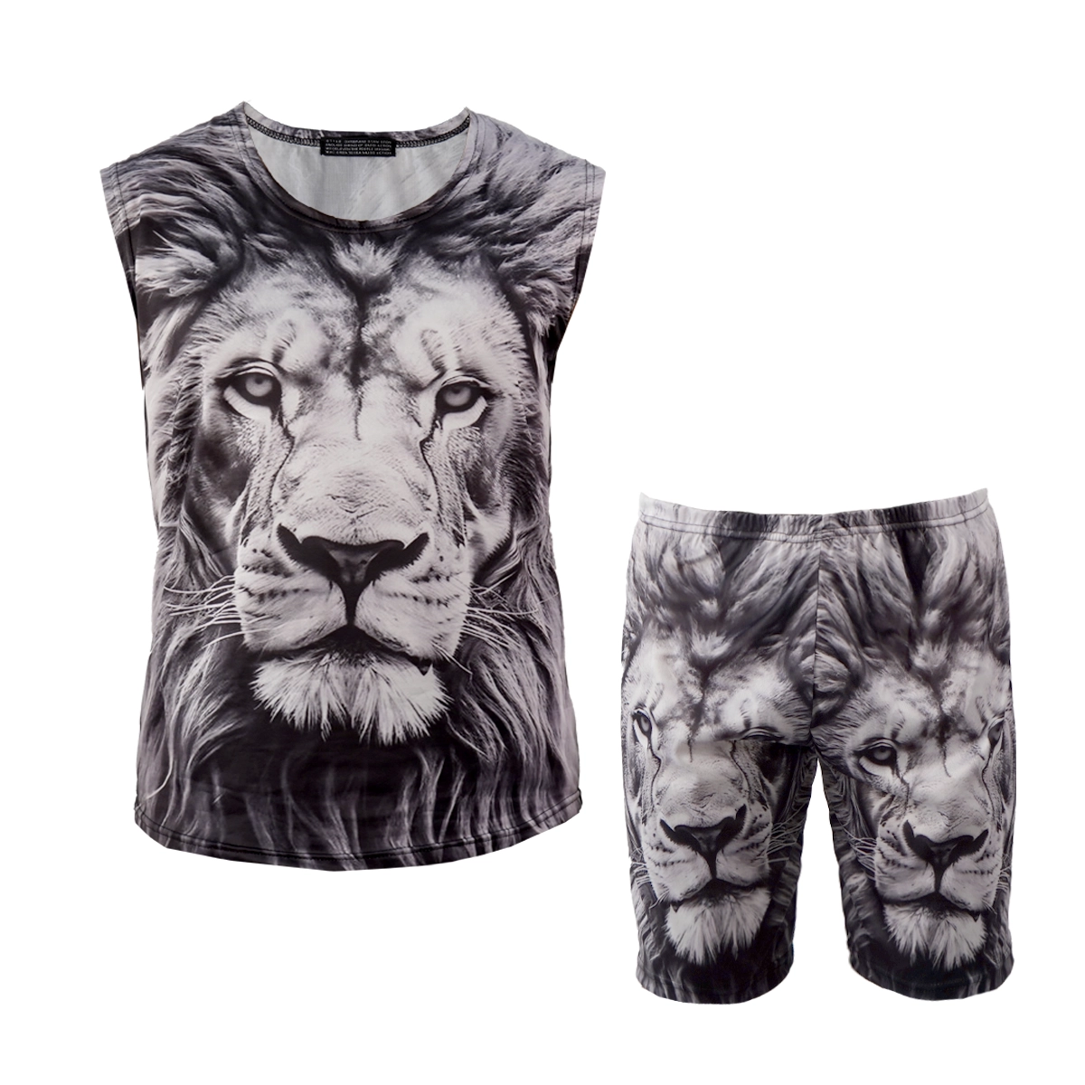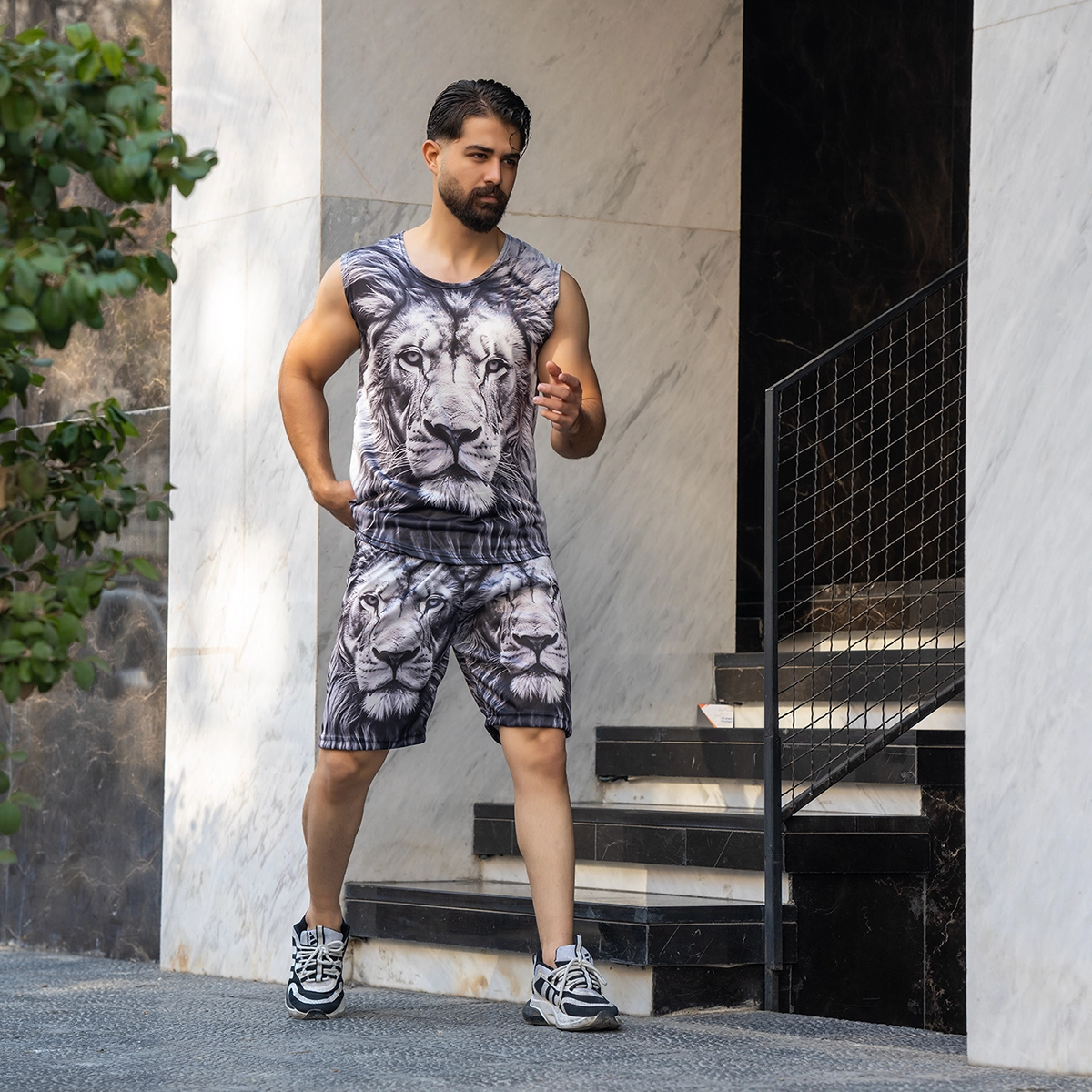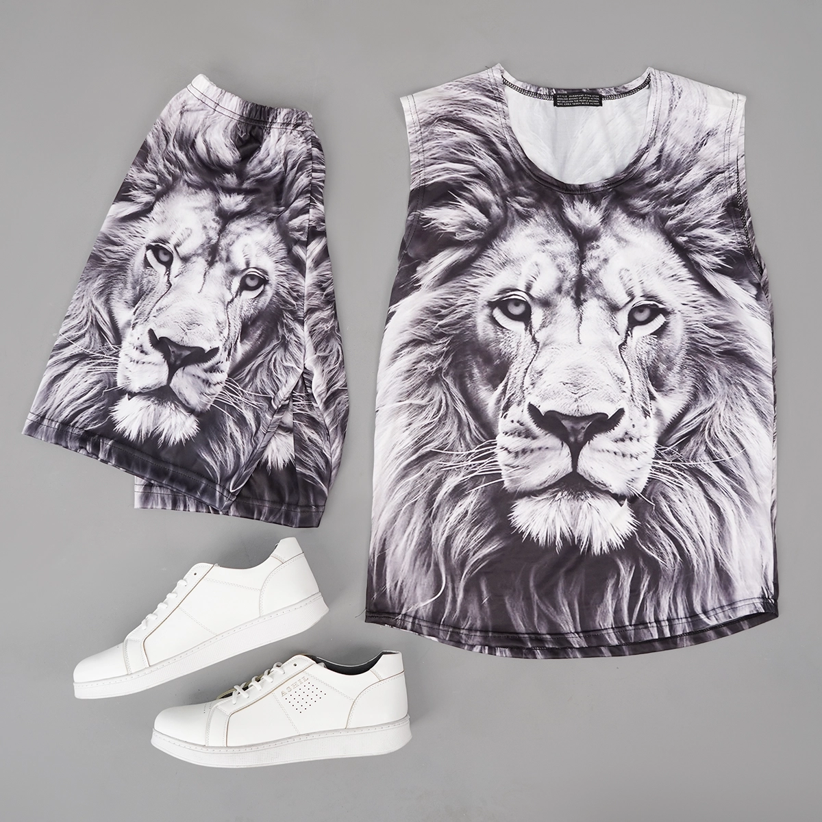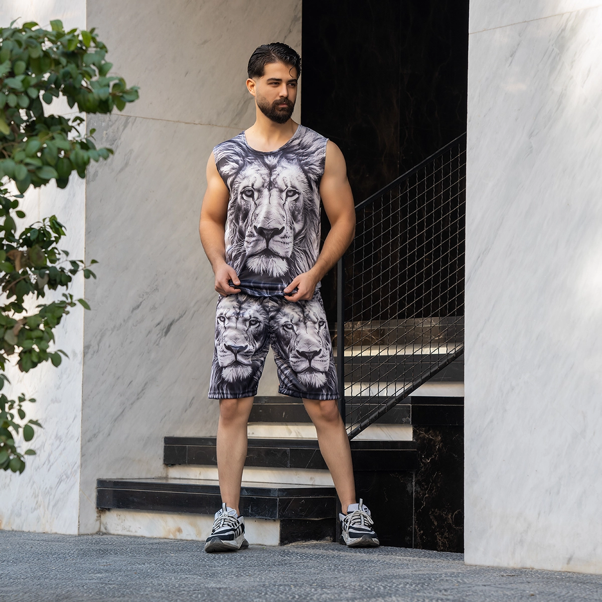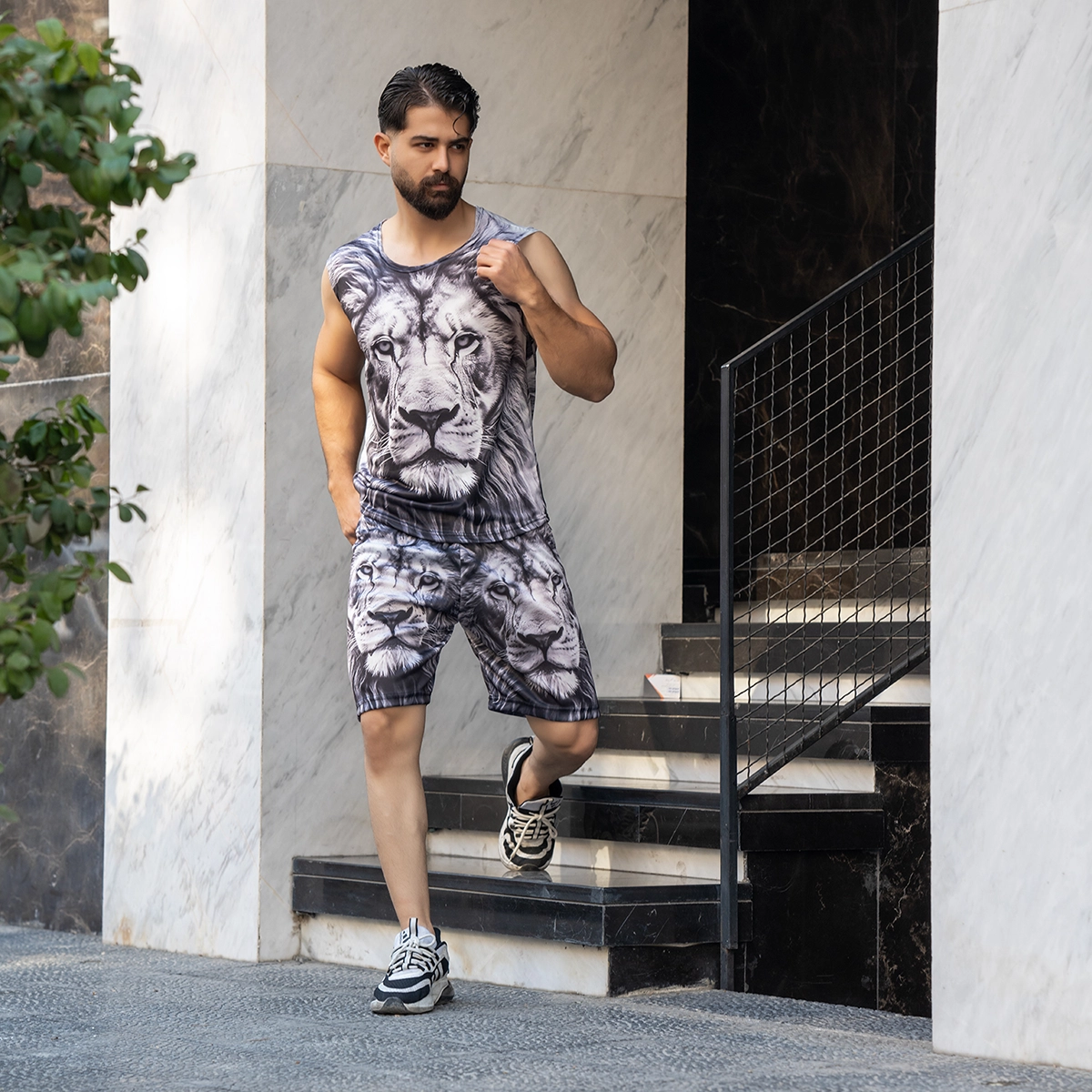 ست رکابی شلوارک مردانه طرح شیر سیاه و سفید