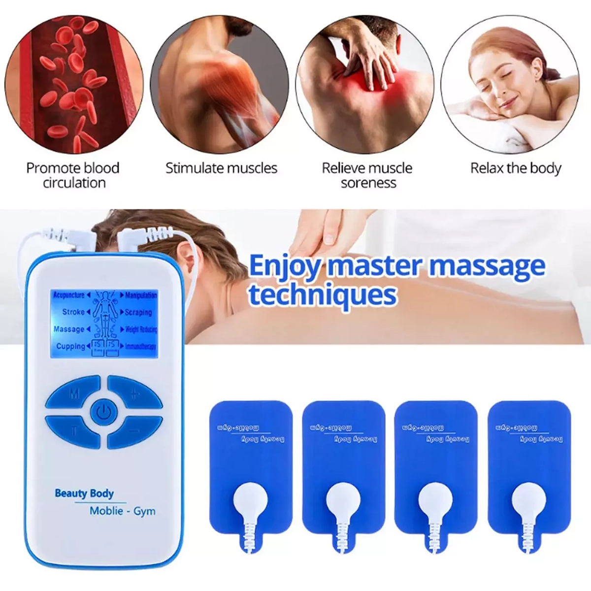 1. با استفاده از پدهای الکتریکی ، ماساژ عمیق بوسیله فرکانس می تواند به طور موثر عضلات را تحریک کند، گردش خون را بهبود بخشد، درد عضلانی را تسکین دهد، خستگی فیزیکی را کاهش دهد و به سرعت بدن را آرام کند.