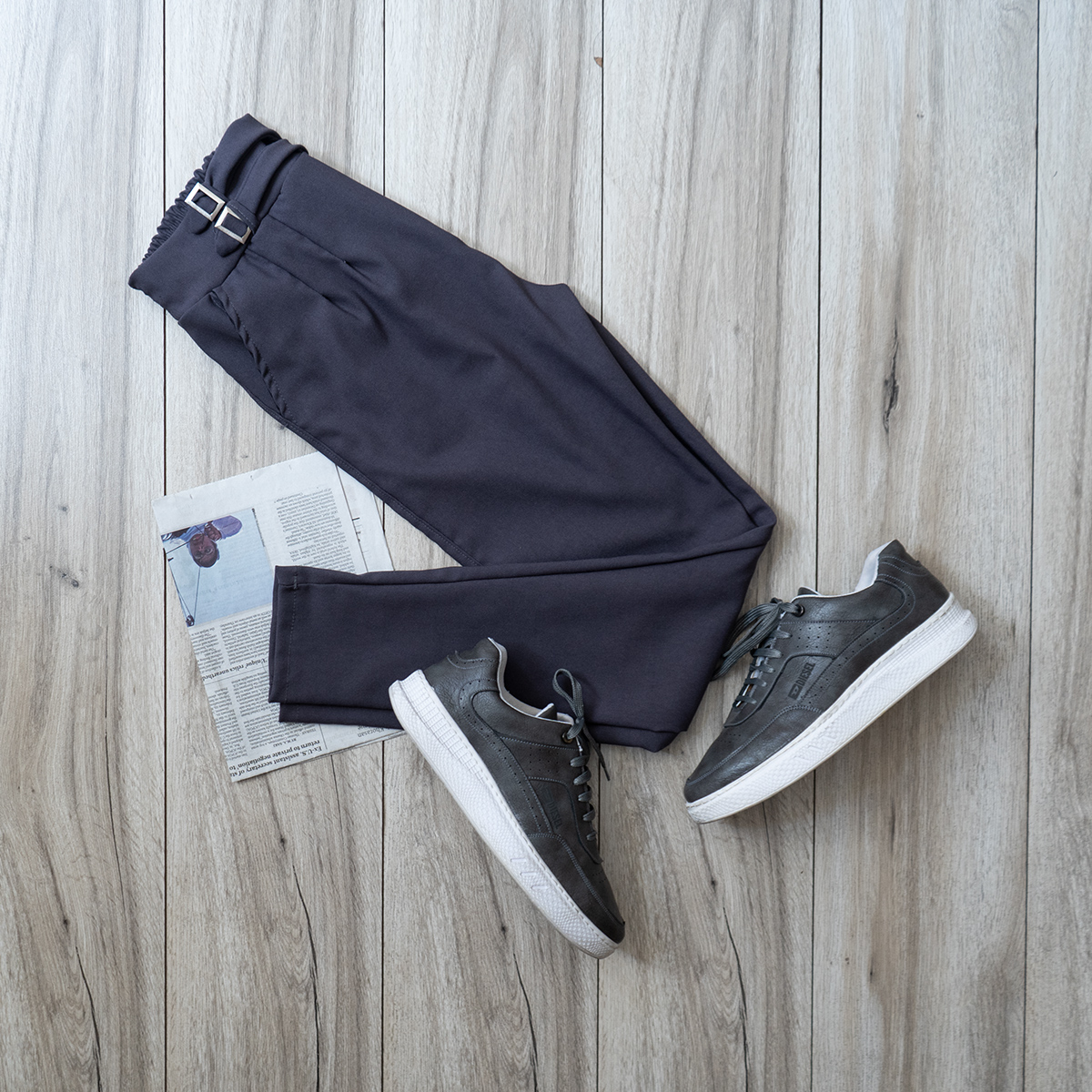 شلوار دو سگك طوسي تيره مردانه مدل Migel