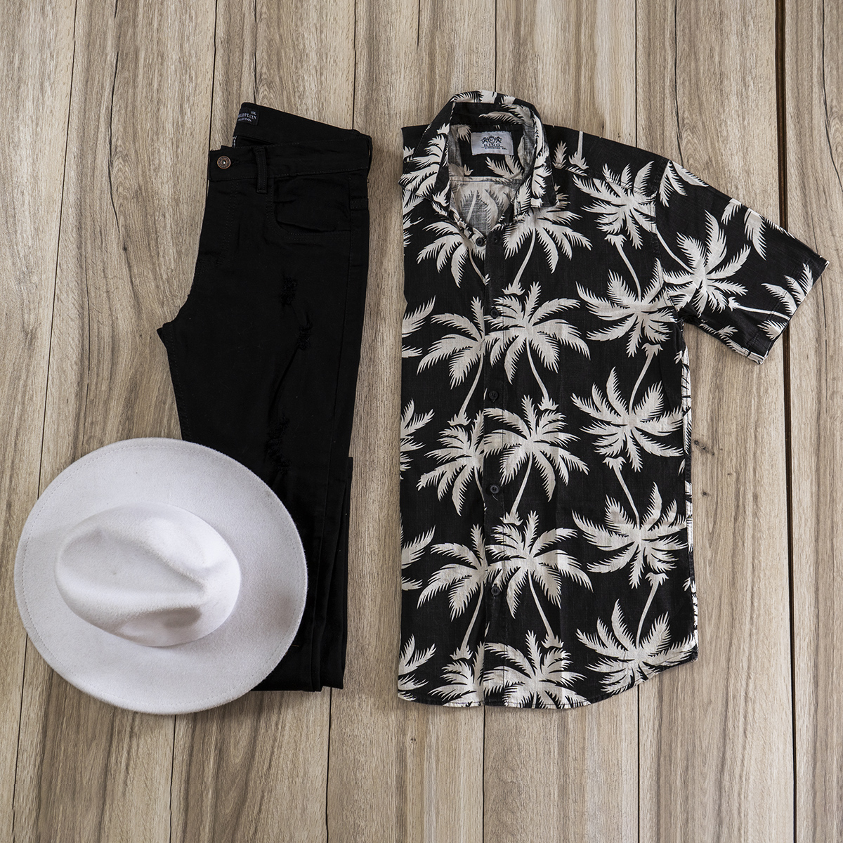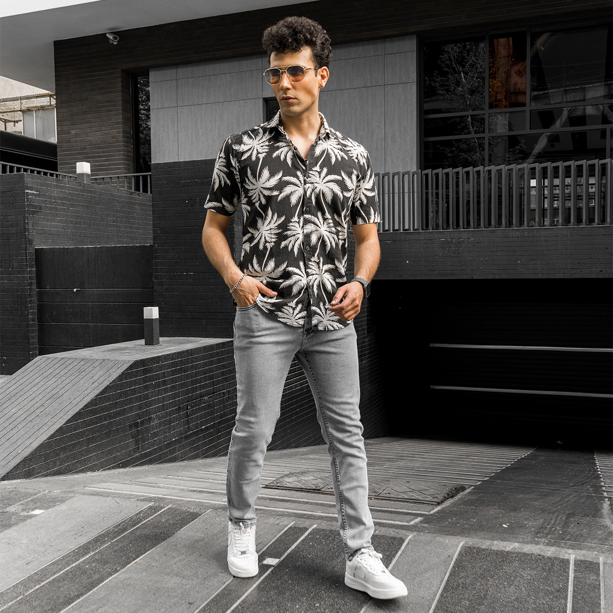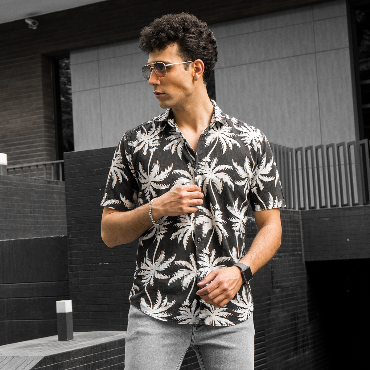 پيراهن هاوايي مردانه مشكي سفيد مدل Riofer