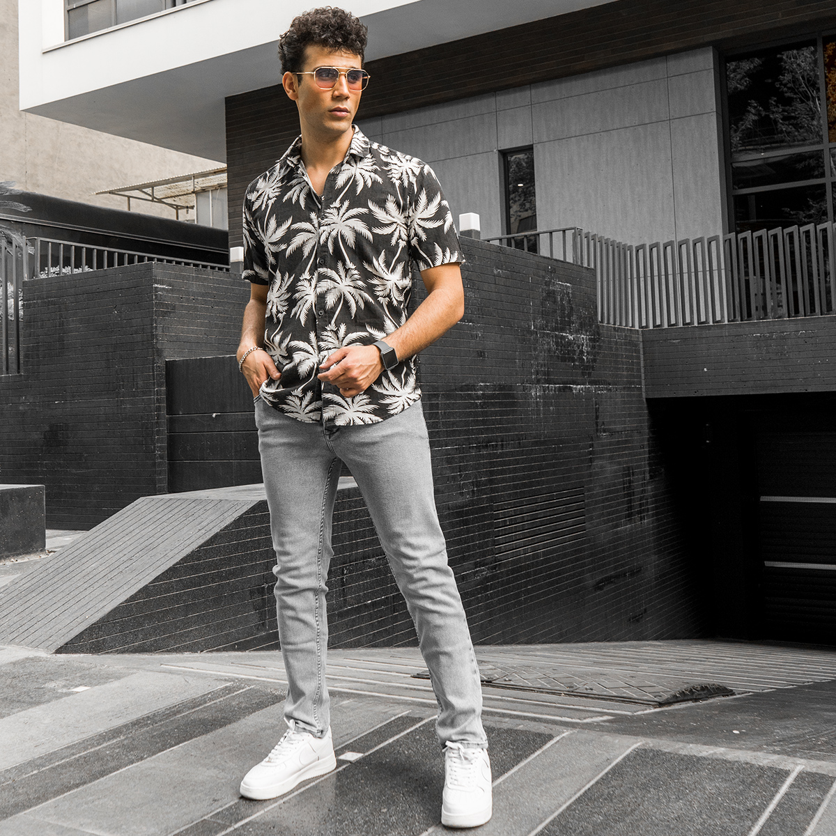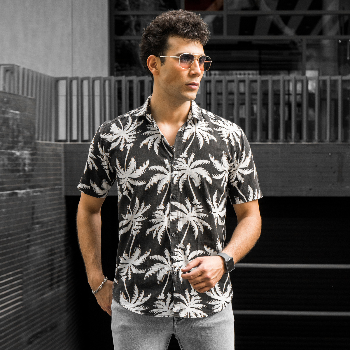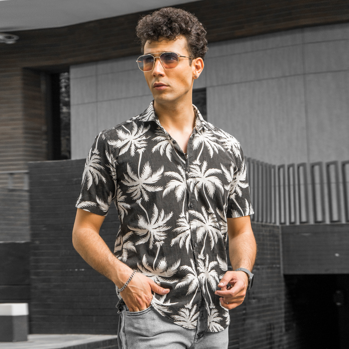 پيراهن هاوايي مردانه مشكي سفيد مدل Riofer