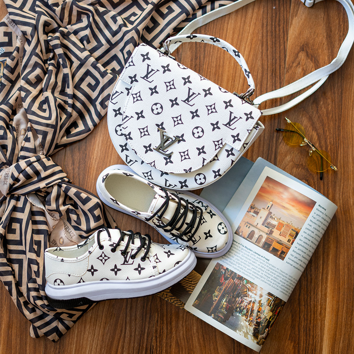 ست كيف و كفش سفيد دخترانه LV مدلPAYTON