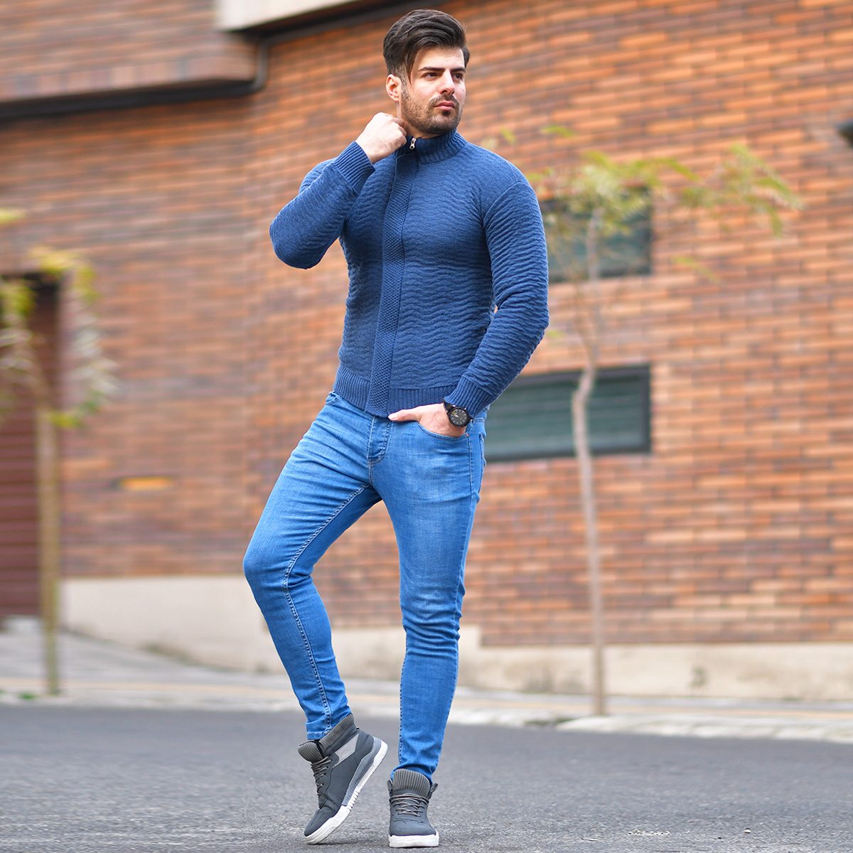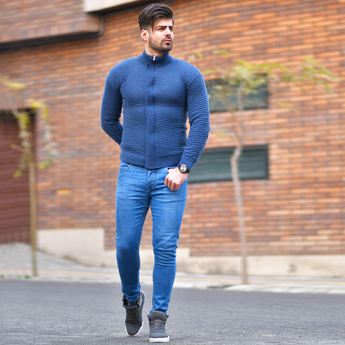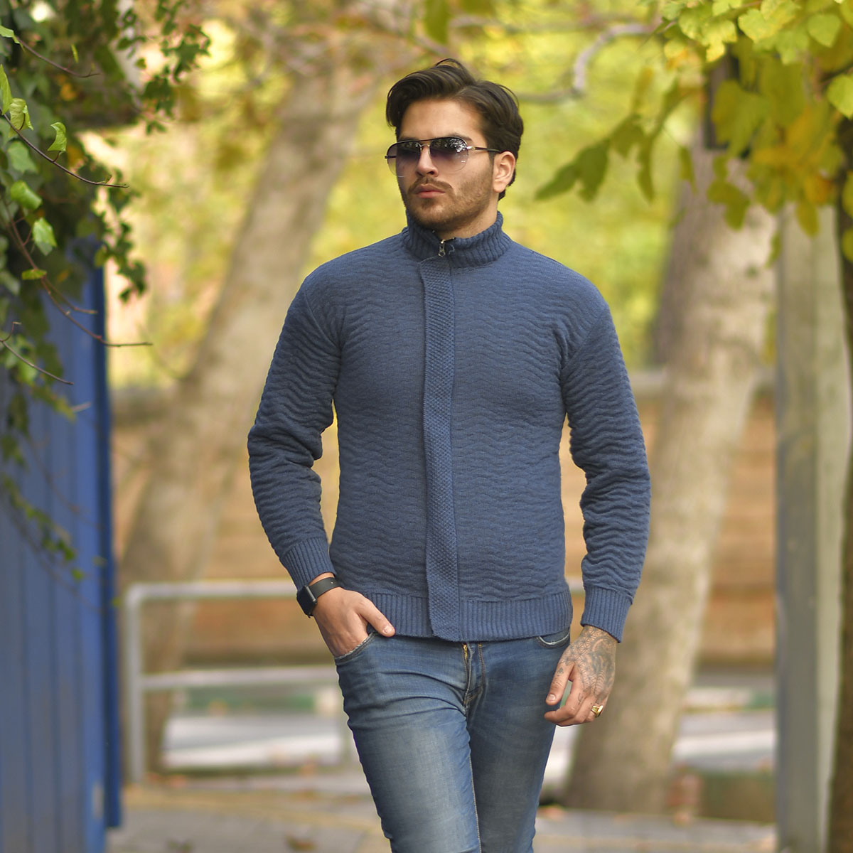 سوئيشرت بافت سرمه اي مردانه مدل Jenly