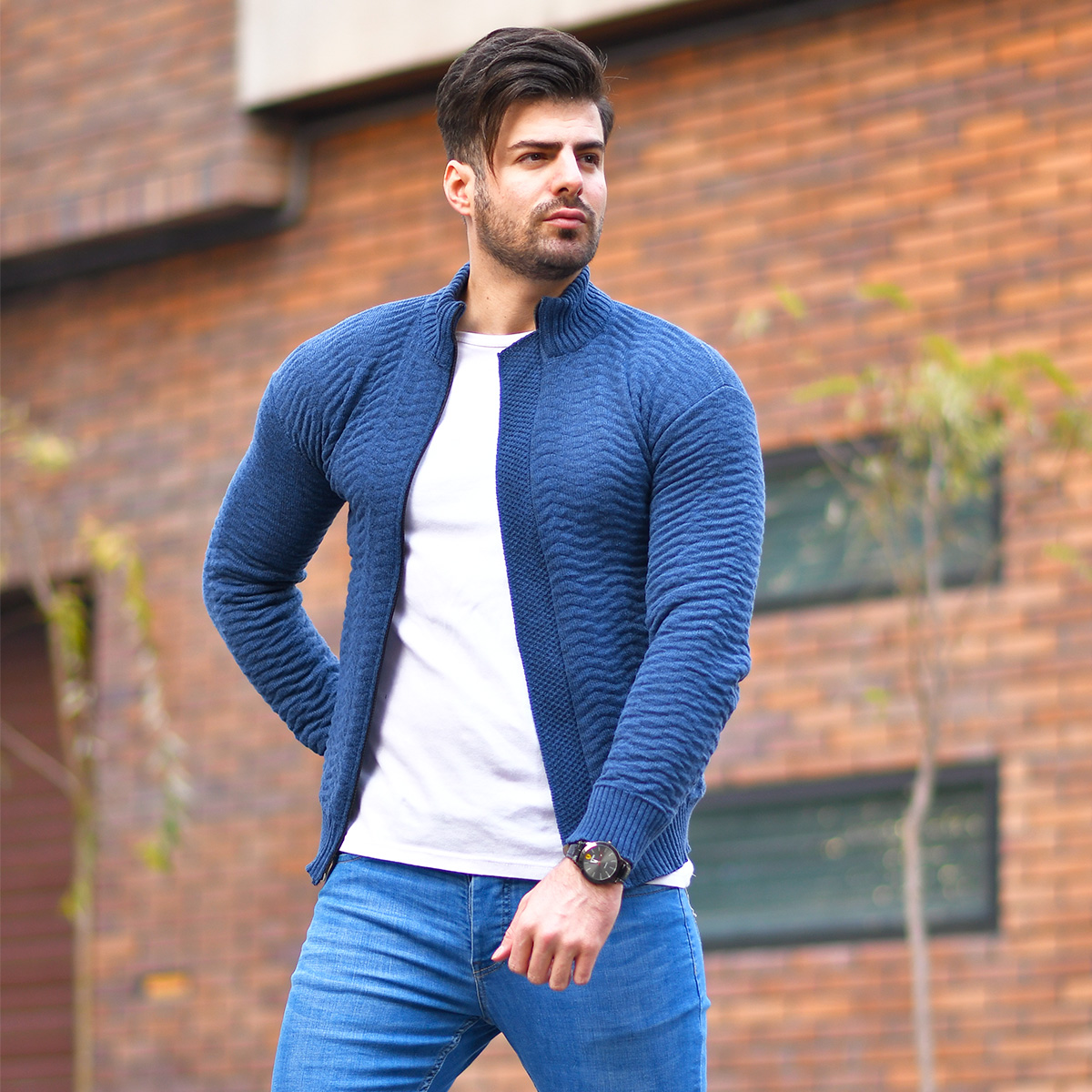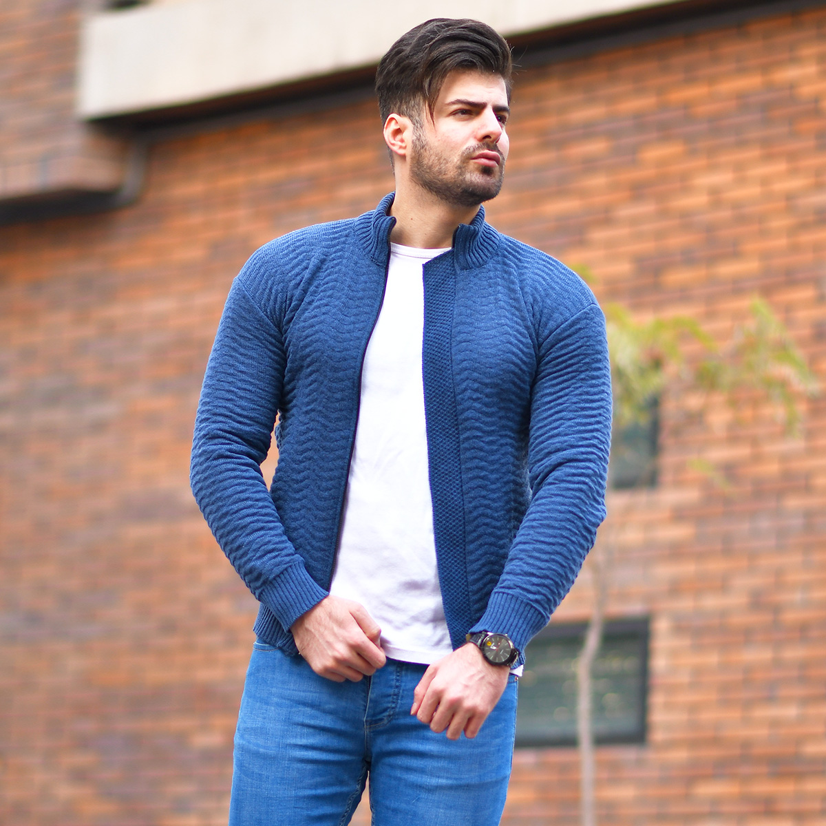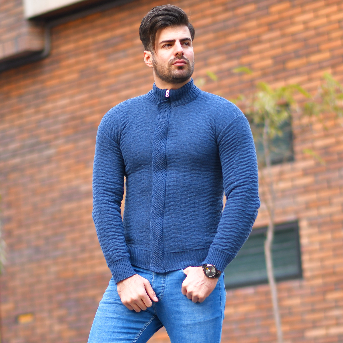 سوئيشرت بافت سرمه اي مردانه مدل Jenly