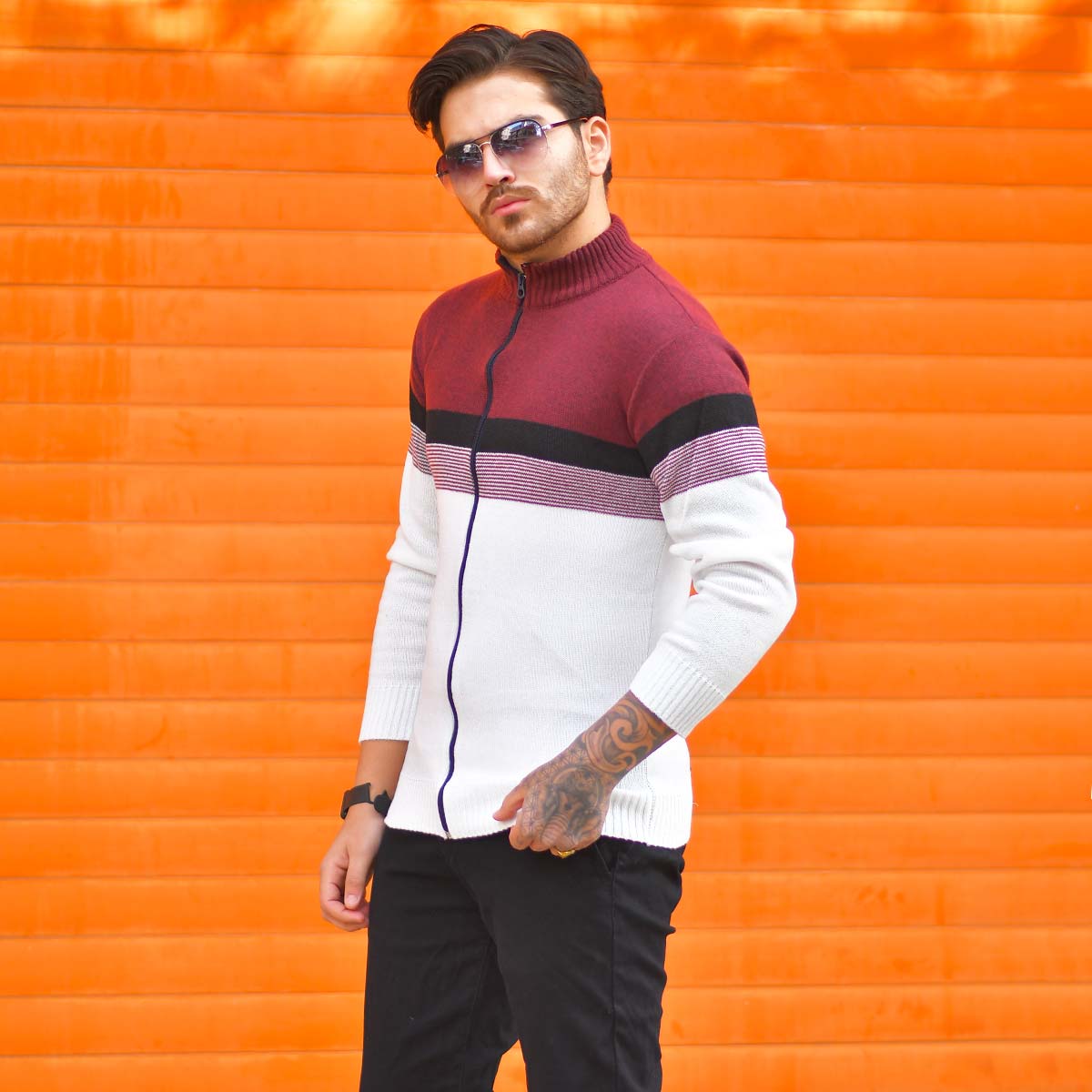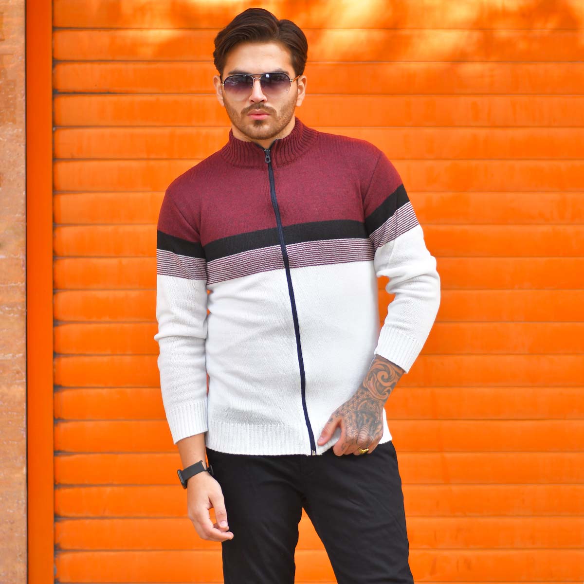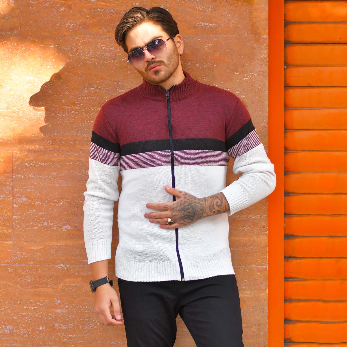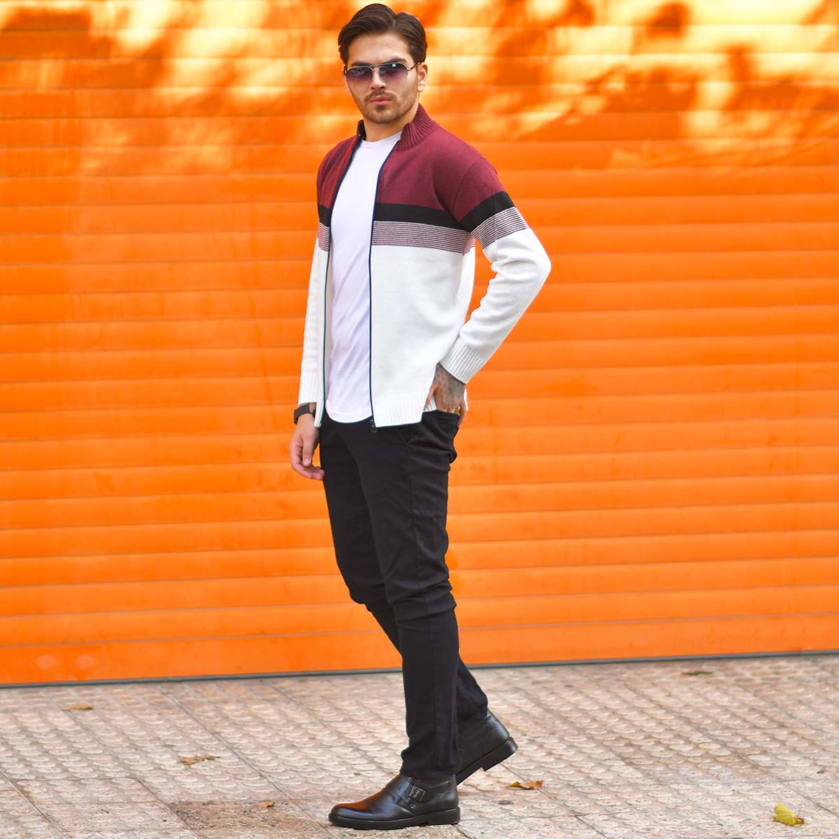 سوئيشرت بافت مردانه مدل Brenda رنگ زرشكي و سفيد