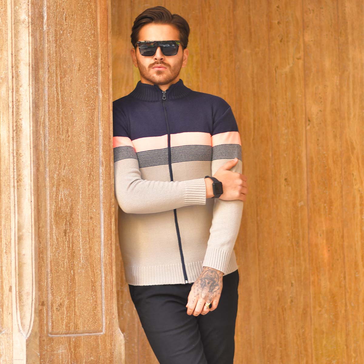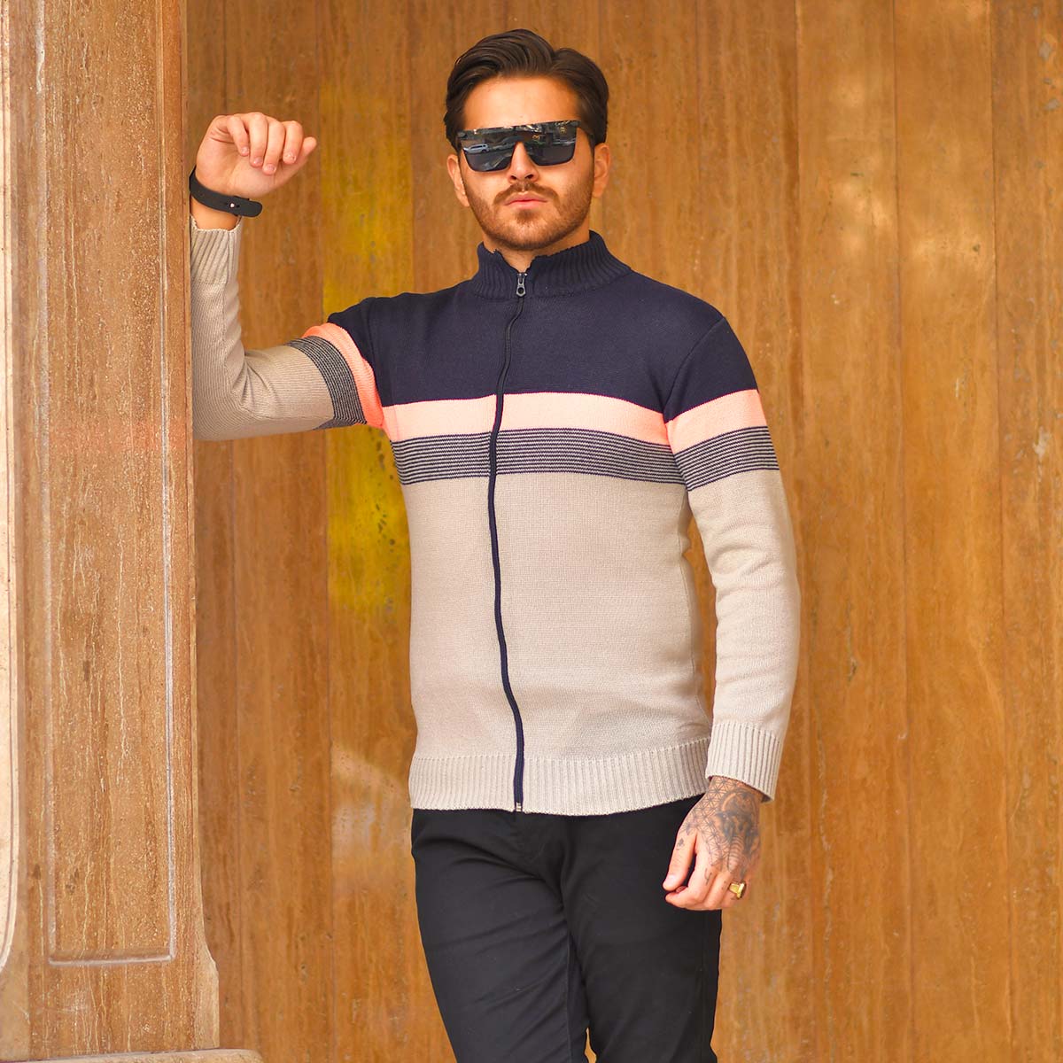 سوئيشرت بافت مردانه مدل Brenda رنگ سرمه اي طوسي