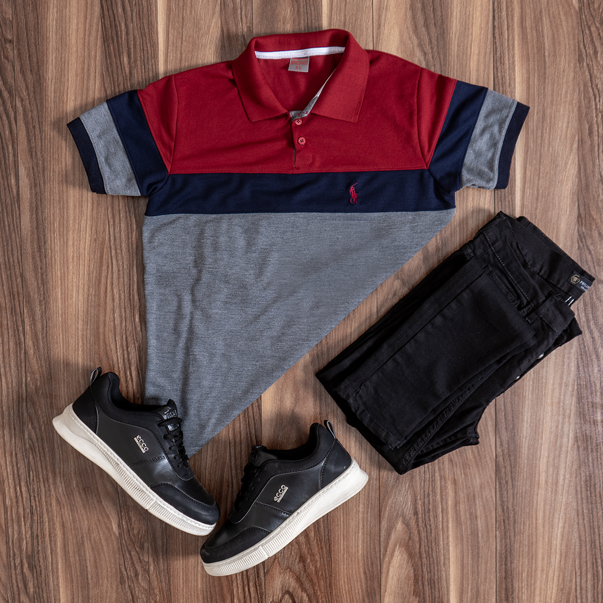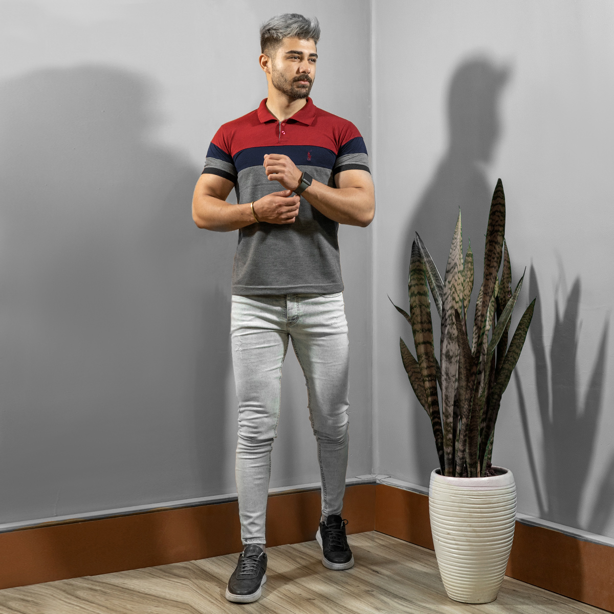 تيشرت مردانه رنگ طوسي زرشکی مدل chian