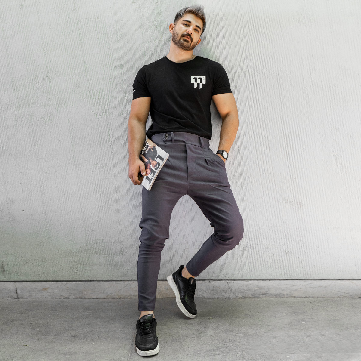 شلوار اسلش كمربندي خاكستري مردانه مدل Legans
