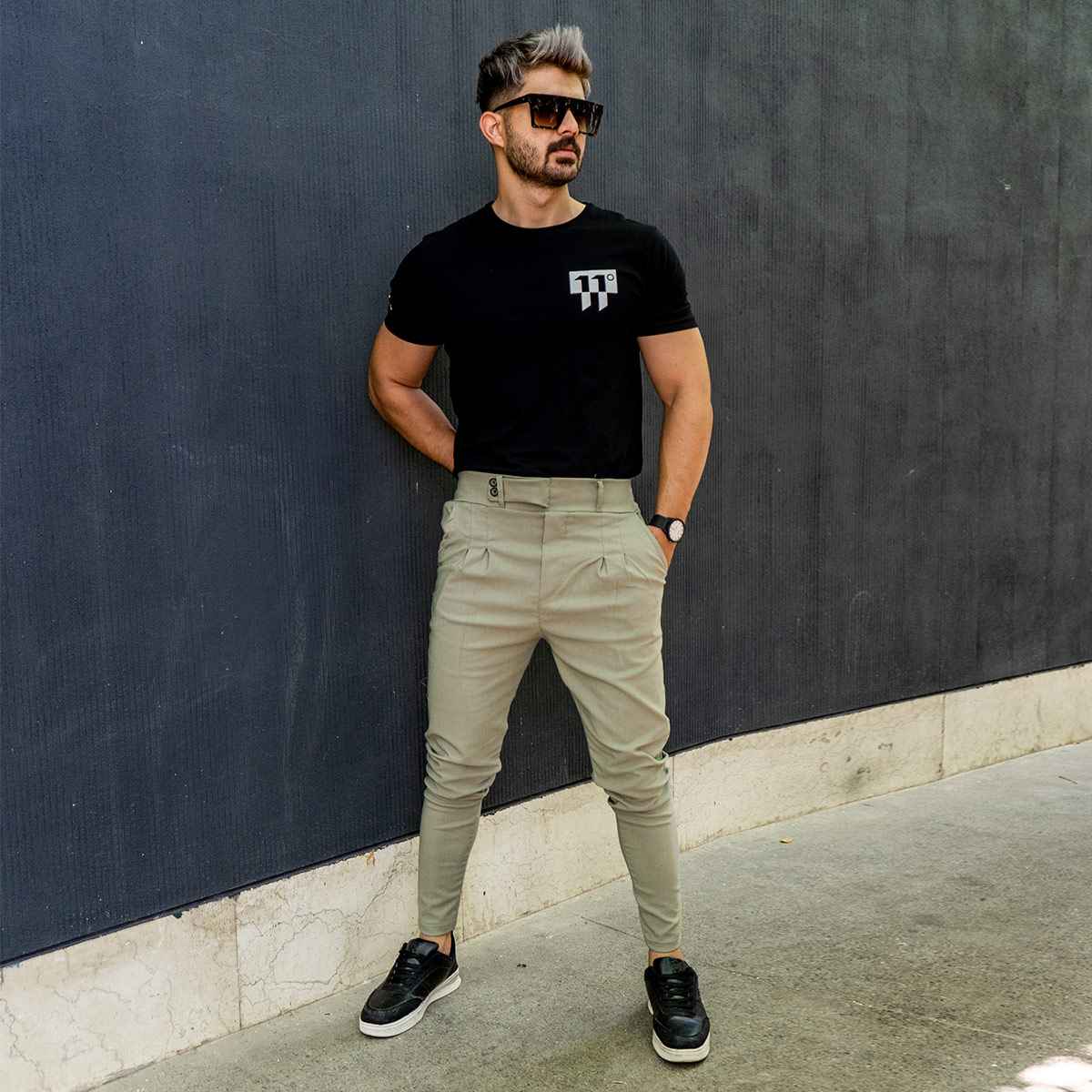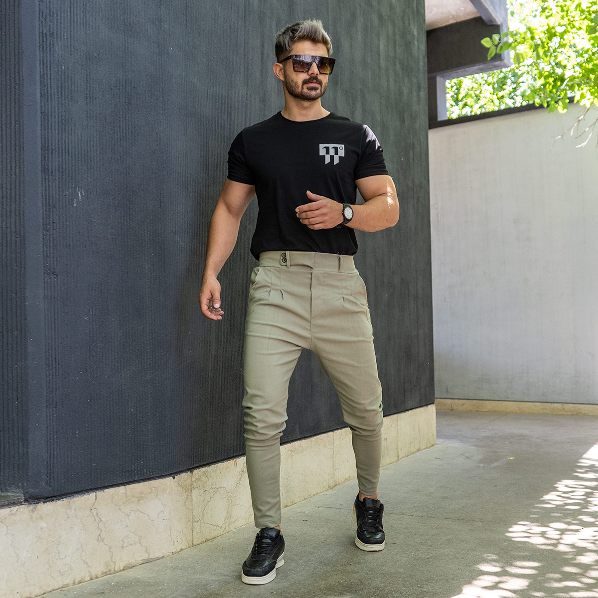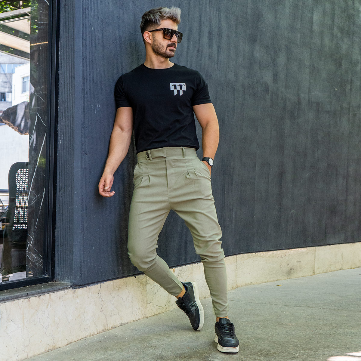 شلوار اسلش كمربندي سبز مردانه مدل Legans