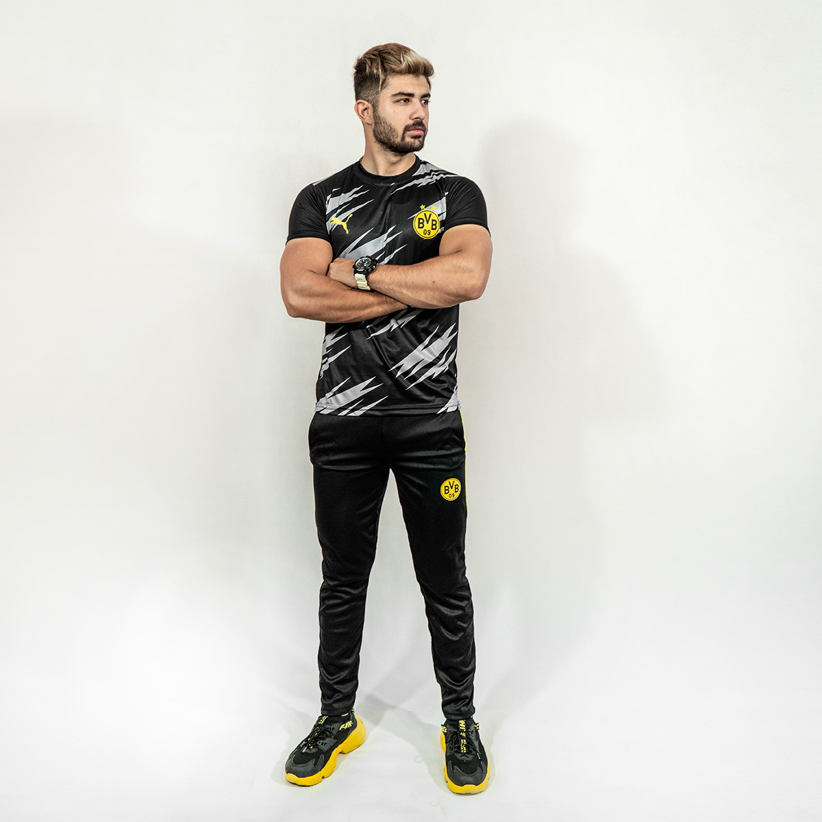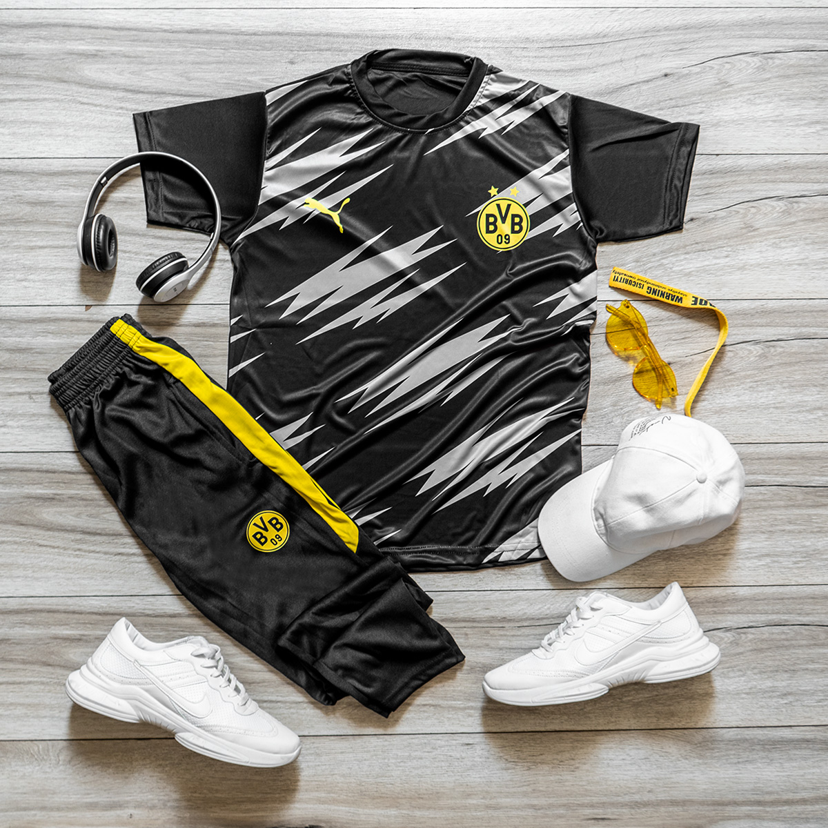 علاقهمندان باشگاهها و تیمهای مختلف ورزشی تمایل دارند پوشاکی با طرح و لوگوی همان باشگاه را بپوشند. از طرفی پوشیدن تیشرت به تنهایی یا شلوار به تنهایی، چندان مورد رضایت نیست؛ به همین دلیل این ست به صورت تیشرت و شلوار ارائه شده و طرح و لوگوی تیم فوتبال محبوب دورتموند را در خود دارد.