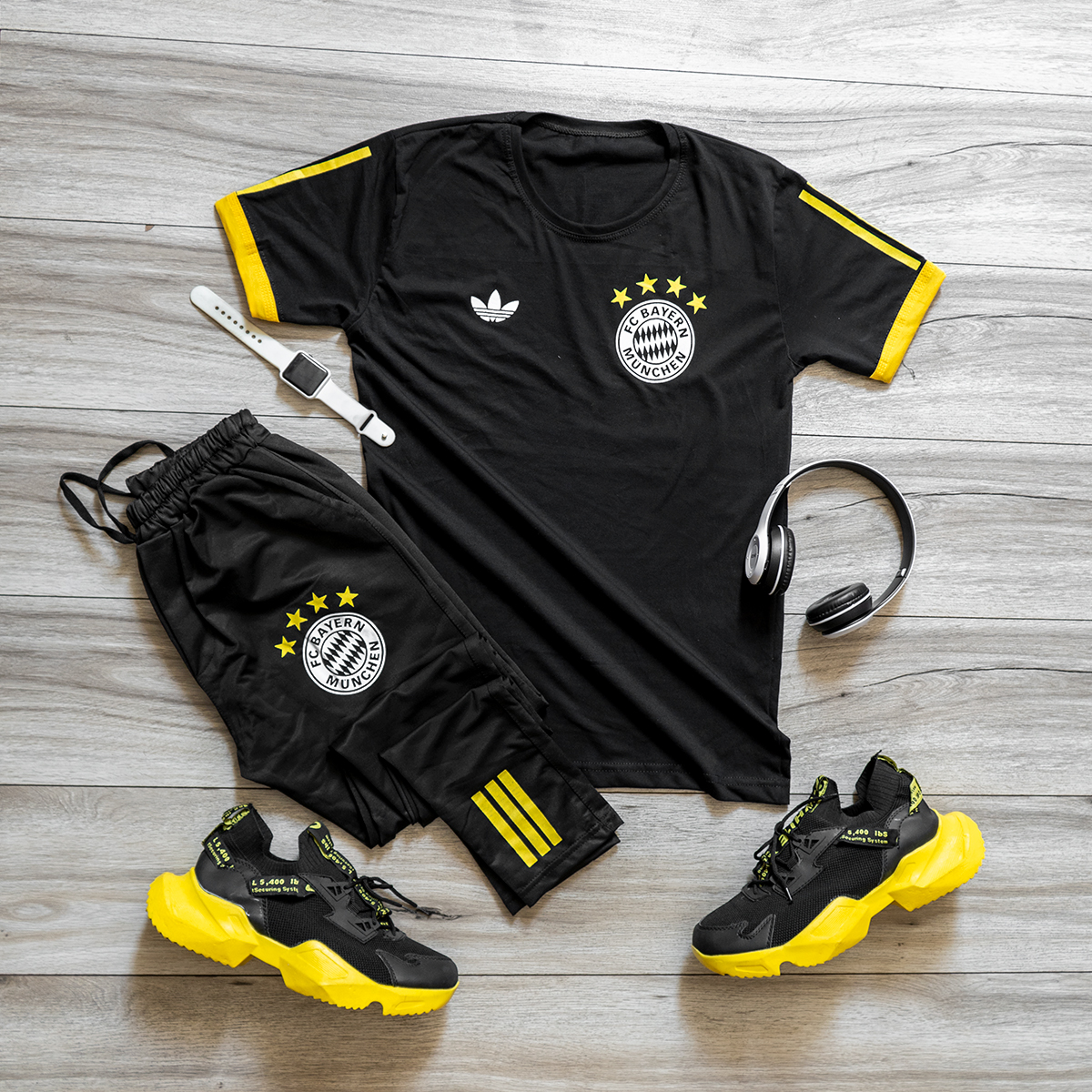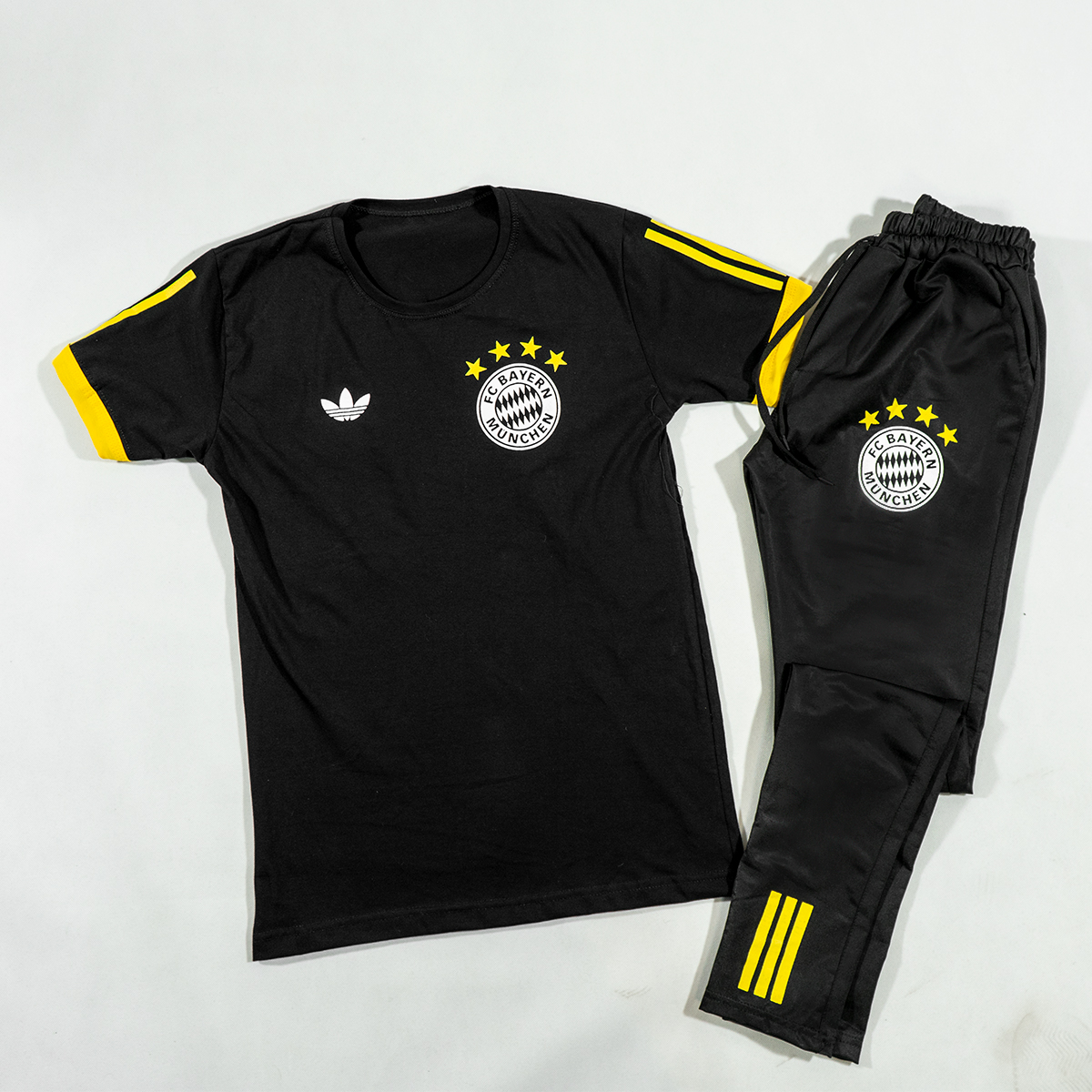 علاقهمندان باشگاهها و تیمهای مختلف ورزشی تمایل دارند پوشاکی با طرح و لوگوی همان باشگاه را بپوشند. از طرفی پوشیدن تیشرت به تنهایی یا شلوار به تنهایی، چندان مورد رضایت نیست؛ به همین دلیل این ست به صورت تیشرت و شلوار ارائه شده و طرح و لوگوی تیم فوتبال محبوب بایرن مونیخ را در خود دارد.