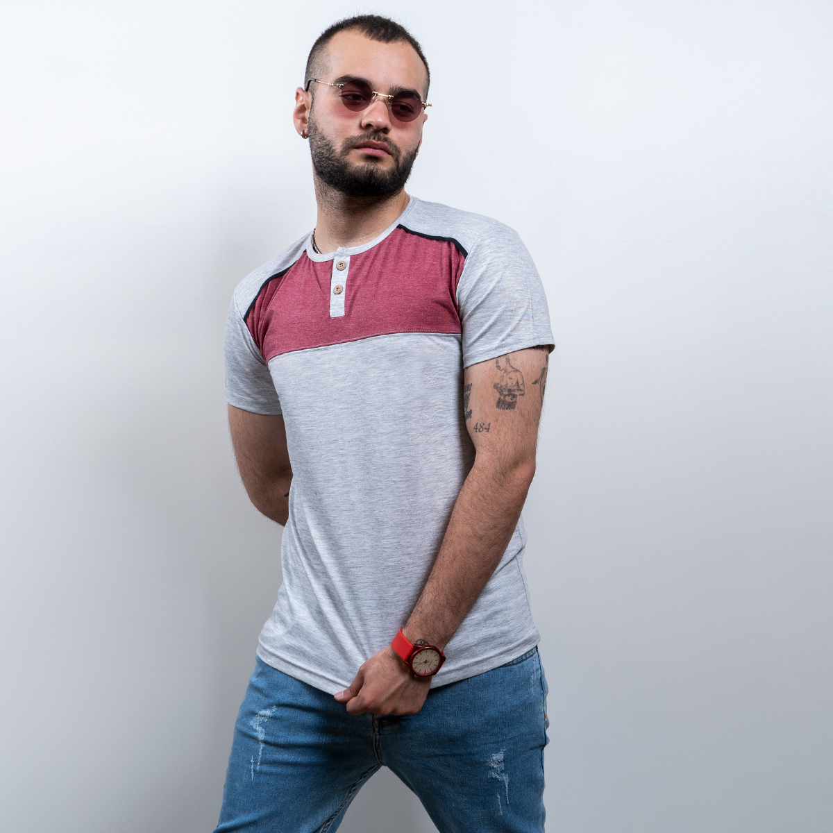 تيشرت مردانه طوسی روشن زرشکی مدل Ratim