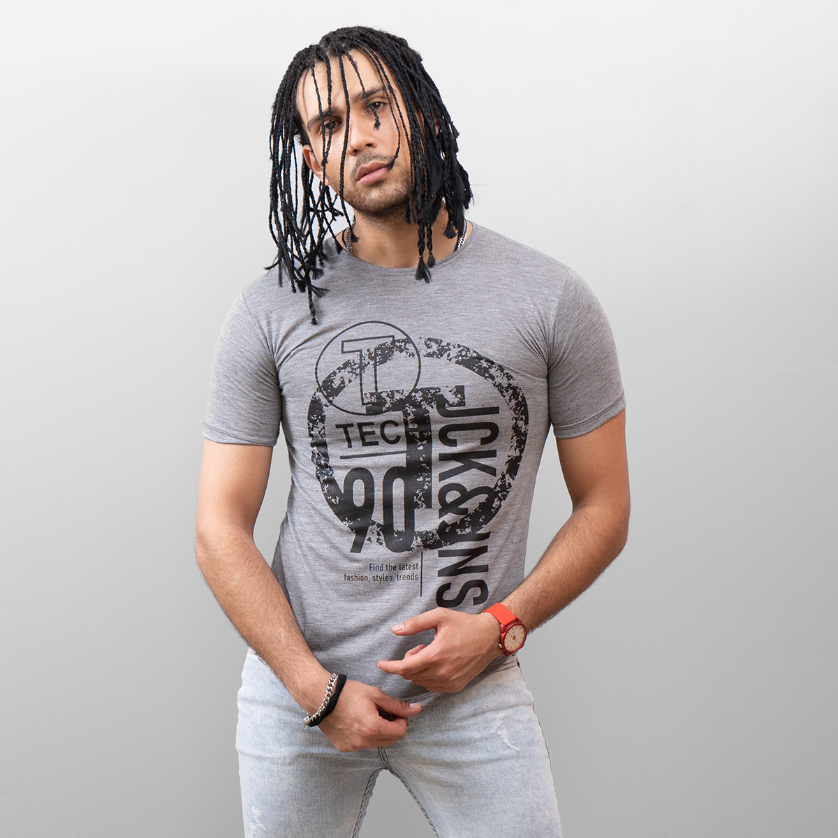 تيشرت مردانه طوسی مدل Romer