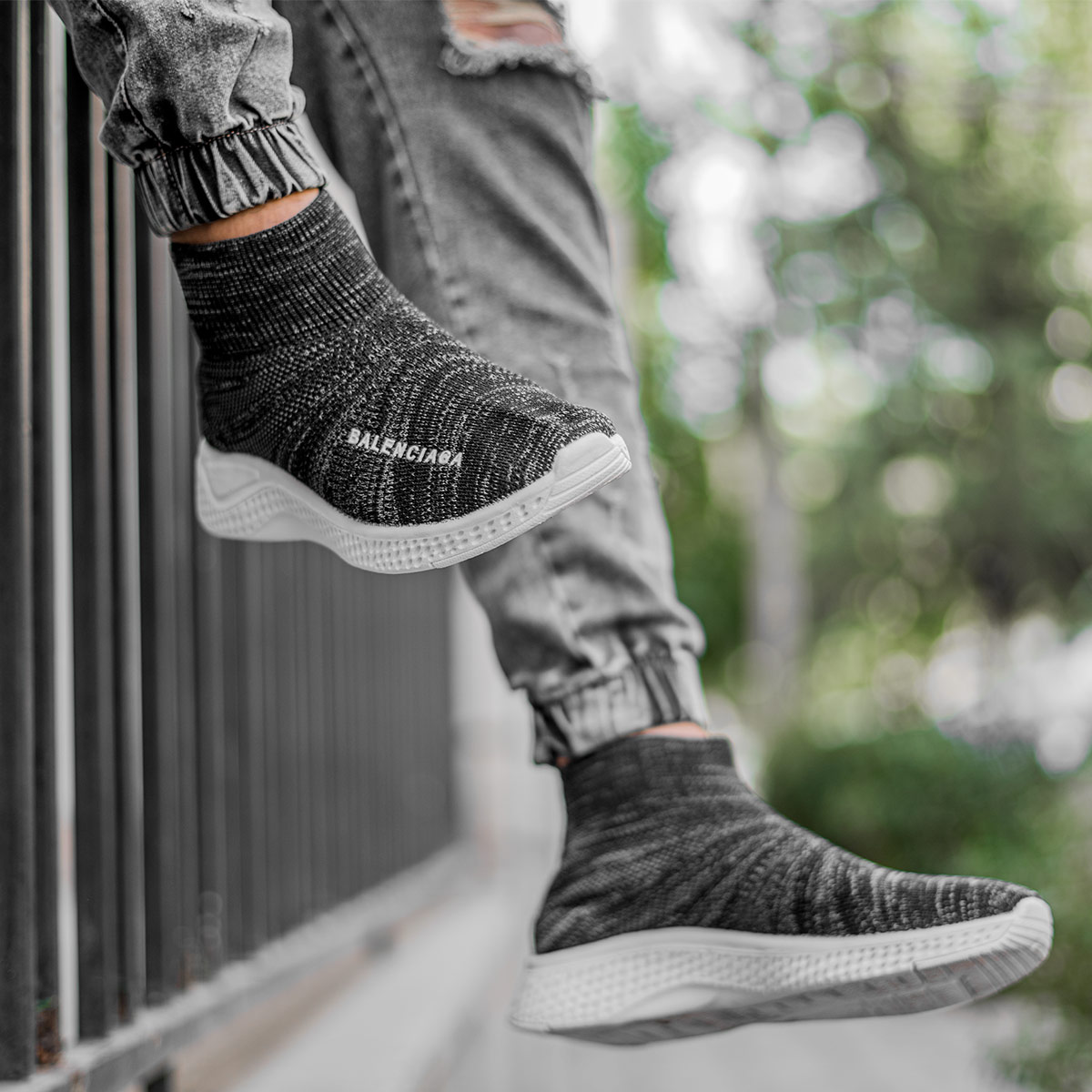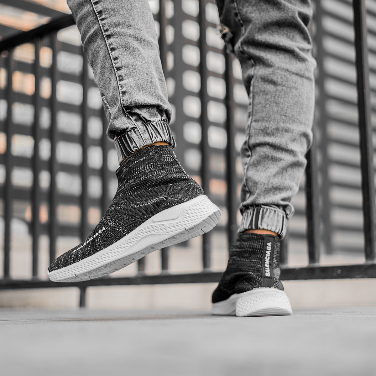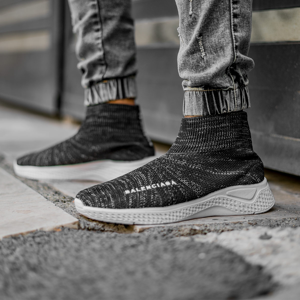 کفش ورزشی Balenciagaمردانه مشکی مدل Lonix، شبیه جوراب طراحی شده است که فشار واردشده به پاها را به حداقل می رساند. کاملاً انعطاف پذیر با فناوری ارگونومیک و فوق العاده سبک است و لوگوی بالنسیاگا روی کفش حک شده است.