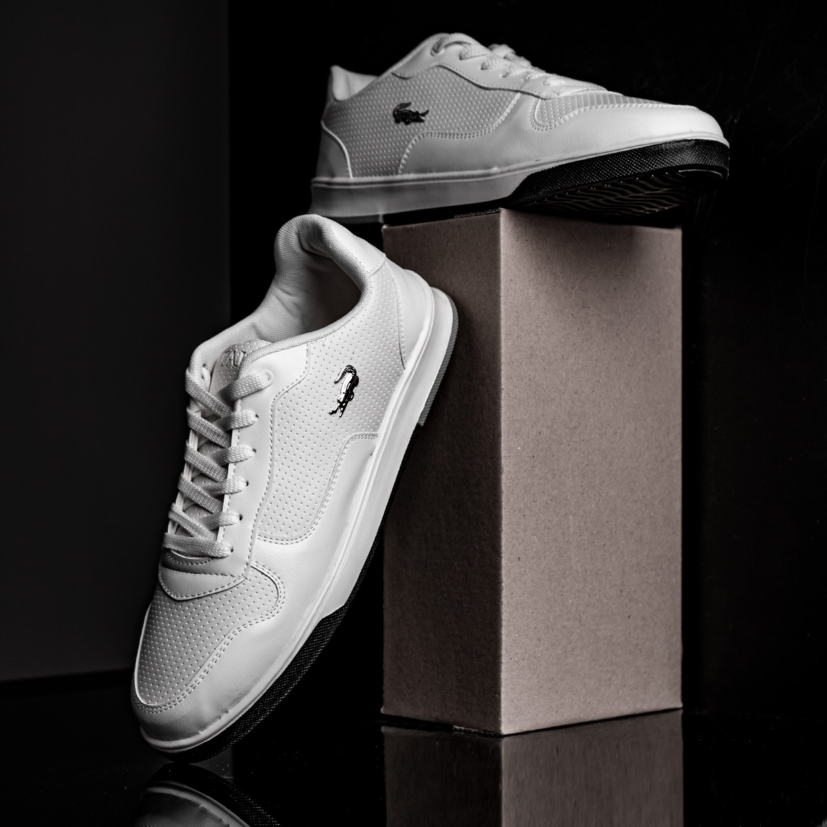 کفش Lacosteسفید مردانه مدلLakat از طراحی کلاسیکی برخوردار بوده است.کفی به‌کاررفته در این محصول ساختاری نرم دارد و به‌راحتی بیشتر شما در داخل کفش منجر خواهد شد. این محصول همچنین دارای ظاهری با رنگ سفید بوده که به راحتی میتوان با هر شلواری ست نمود. زیره‌ی به کار رفته ضد سایش و نرمی منحصر به فردی دارد که همین موضوع باعث می‌شود تا محصول عمر مناسبی داشته باشد و بتوانید برای مدتی طولانی از آن استفاده کنید.